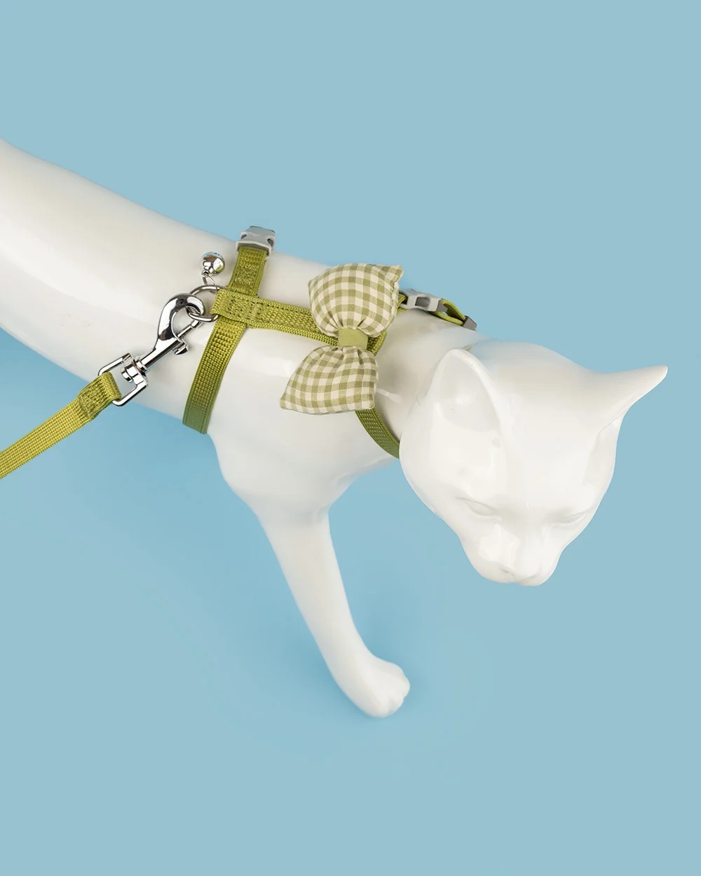 Набір виготовлений з нейлонового матеріалу , який дуже довговічний, простий в очищенні, і дозволяє довго підтримувати інтенсивні кольори (не згасає). На брекетах є металевий кріплення повідця, , і ціле кріпляться пластиковим, міцним рибою -укладаним затискачем . Крім того, він має знімний дзвін, який полегшує розташування домашнього улюбленця.