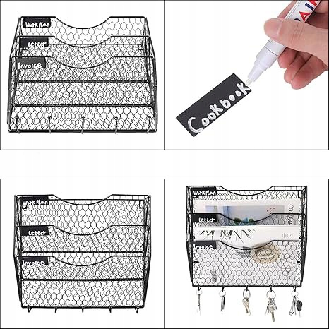 ▶ універсальний і займає невелике місце. Цей власник стінових файлів має 3 окремі діагональні розетки, ідеально підходить для організації файлів, документів, журналів, літератури, директорів, пошти, інструкцій, конвертів манілів та ноутбуків. Нижні 5 гачків можуть повісити клавіші, навушники, сонцезахисні окуляри, шарфи або все, що ви хочете повісити. Скористайтеся своїм вертикальним простором повністю і тримайте порядок на робочому столі.