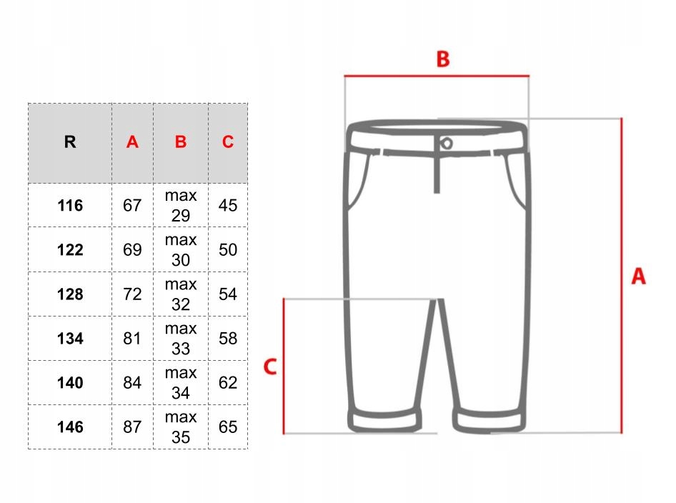 *шириною на талії наведено в таблиці ширина, виміряна плоскою з максимальним розтягуванням; Шорти можна вільно звузити з еластикою всередині