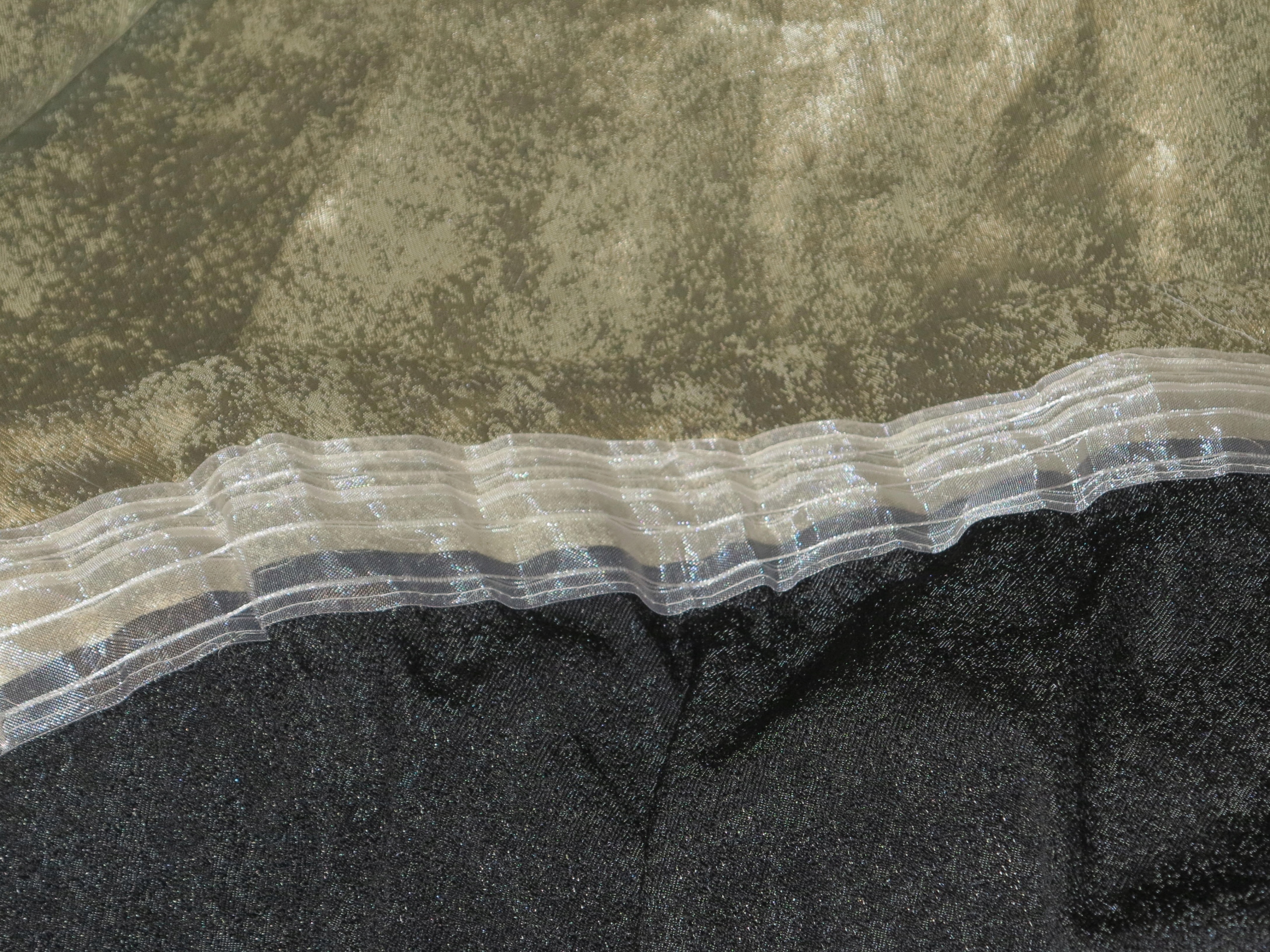 красиві та елегантні суцільні срібні штори, що мерехвують золотом. Мені важко точно визначити колір. Також це не суто срібло. Ні чисто Злоті. Нижній широкий ремінь у чорному малюнку