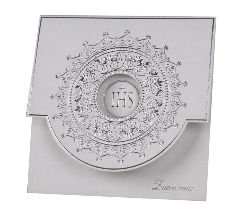 Елегантне та стильне запрошення, виготовлене на високоякісному перламутровому папері зі срібним тисненням, все створює чудовий ефект. Подбайте про кожну деталь Першого Причастя вашої дитини