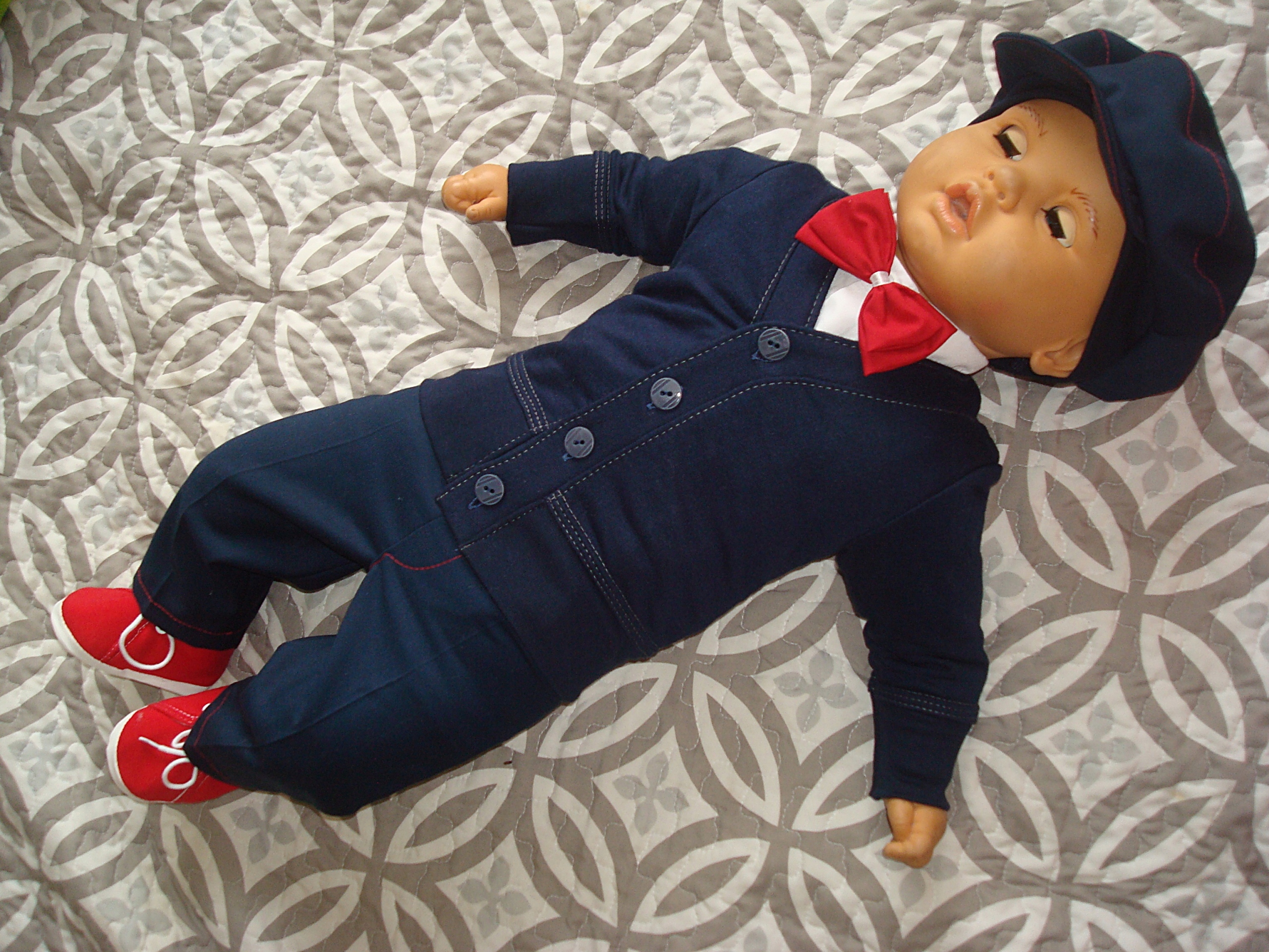 -футболка з довгими рукавами, кріплених дрімотою. Мушійний зав'язаний на стрічці на вибір із