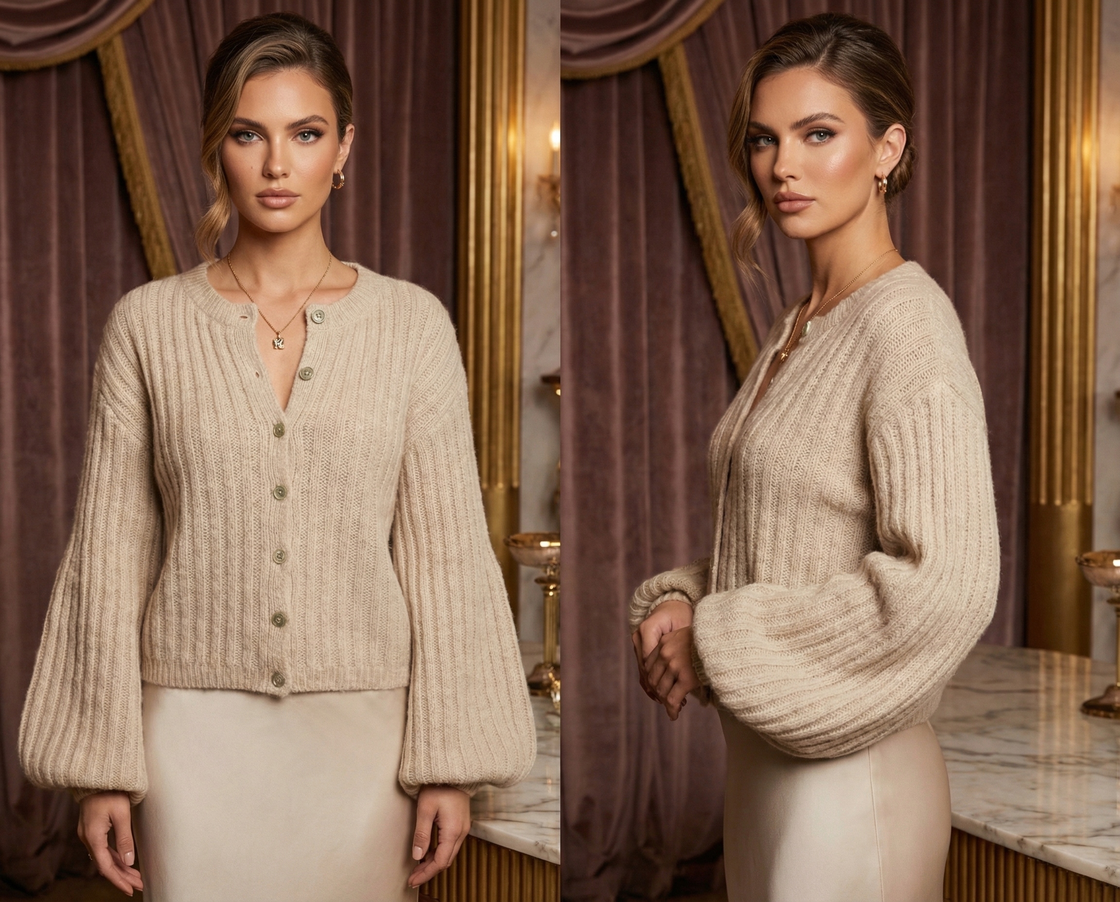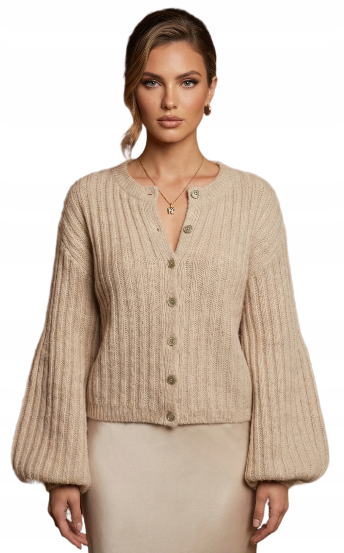 Цей стильний джемпер на ґудзиках класичного бежевого відтінку – це поєднання позачасової елегантності та останніх тенденцій моди.
