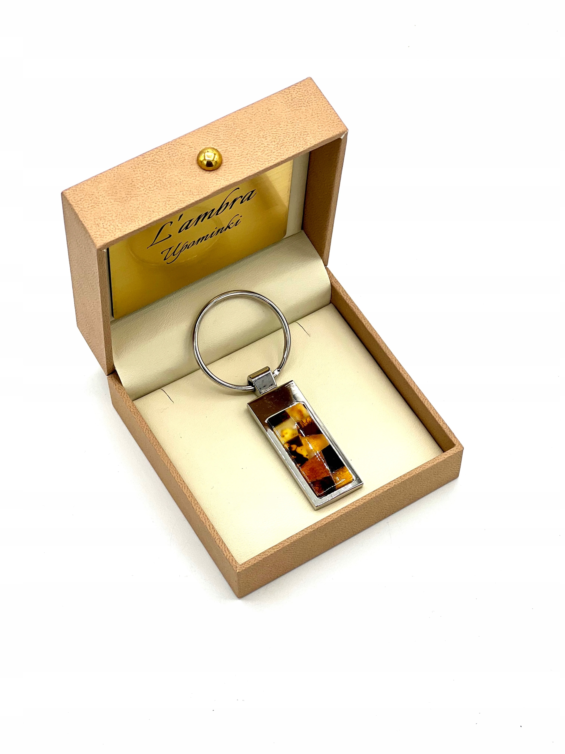 Брелок з бурштиновою мозаїкою з маленьких шматочків балтійського бурштину різних кольорів.