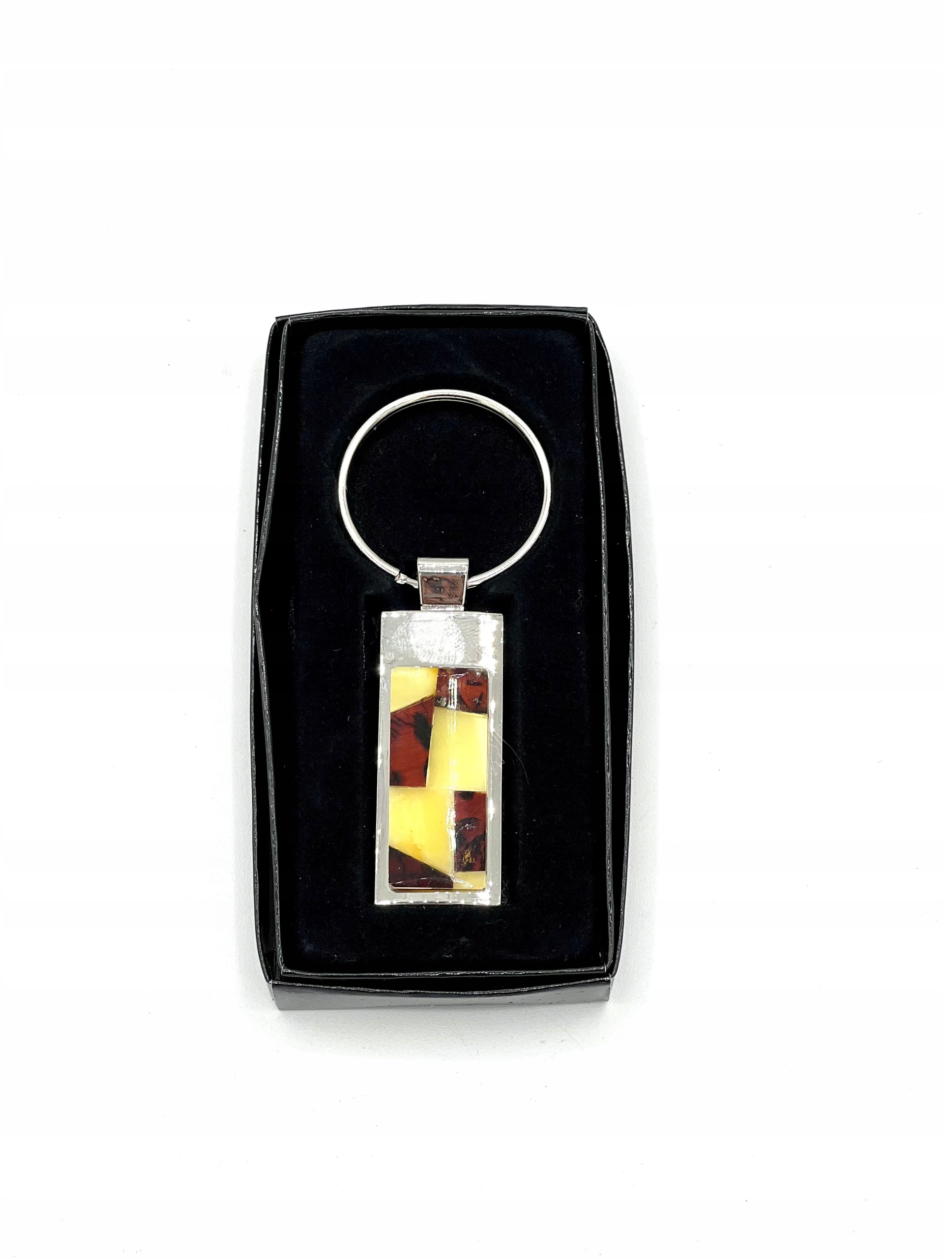 Брелок з бурштиновою мозаїкою з маленьких шматочків балтійського бурштину різних кольорів.