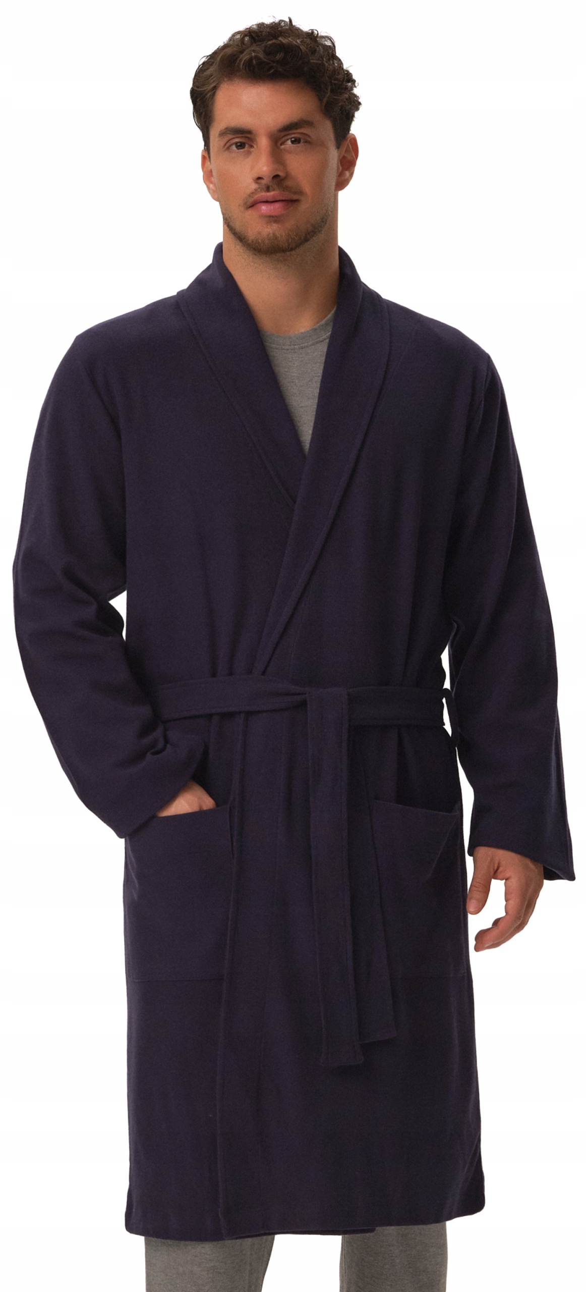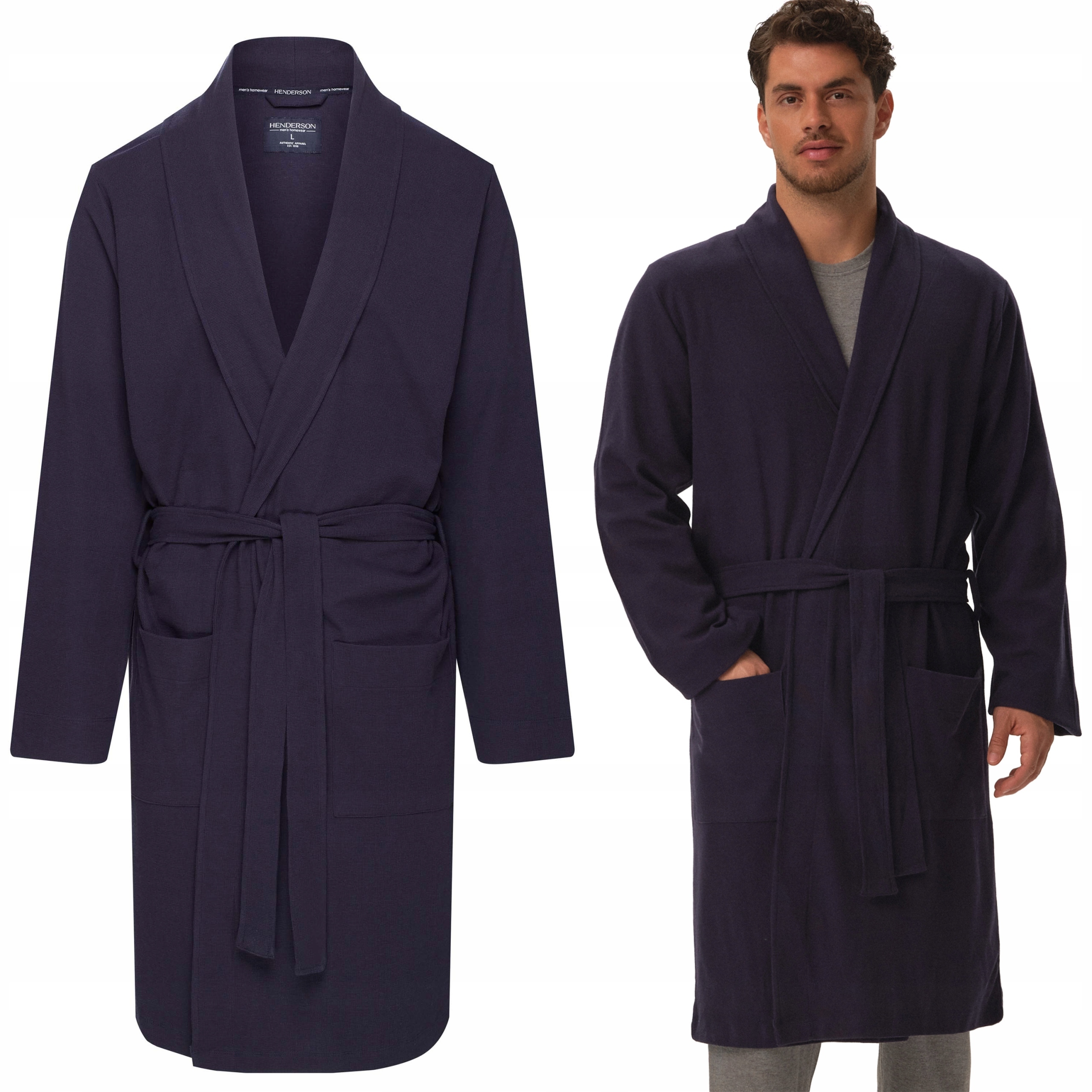 Елегантний чоловічий халат HENDERSON HOME зав'язаний на талії з КОМІРОМ - L