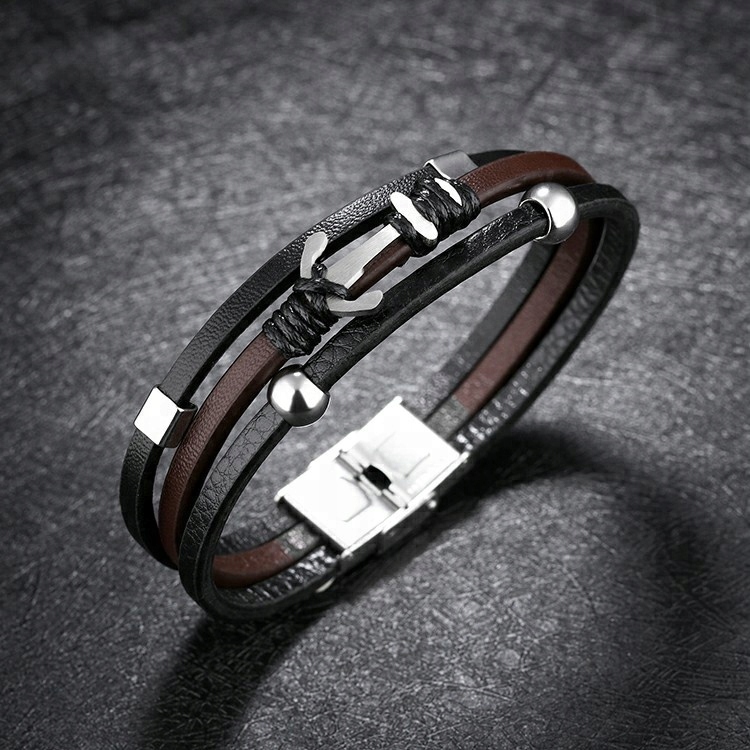 ЕЛЕГАНТНИЙ ЧОЛОВІЧИЙ СТАЛЕВИЙ ЯКІР ШКІРЯНИЙ БРАСЛЕТ