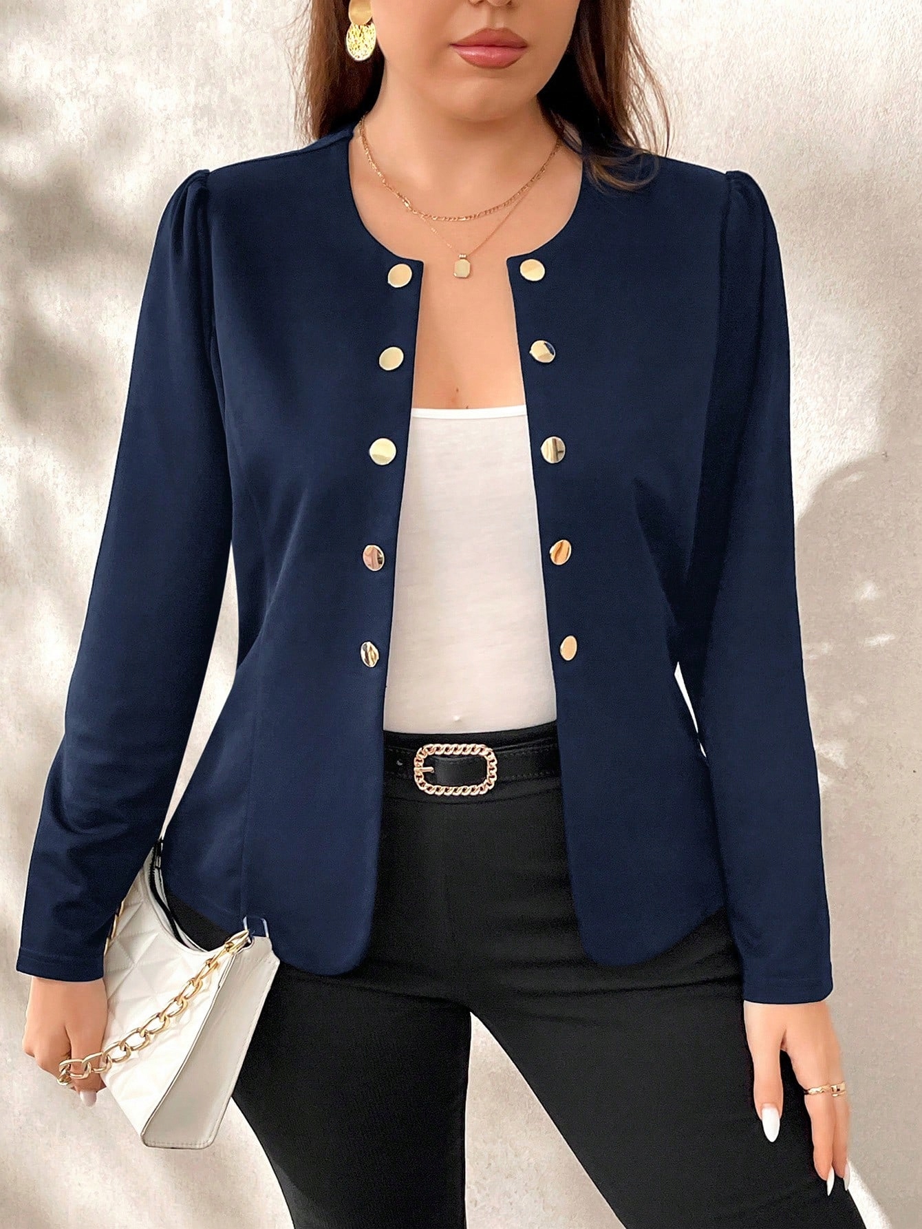 Металеві гудзики надають йому неповторний характер, а класичний крій ідеально підходить як в офісі, так і під час важливих ділових зустрічей.