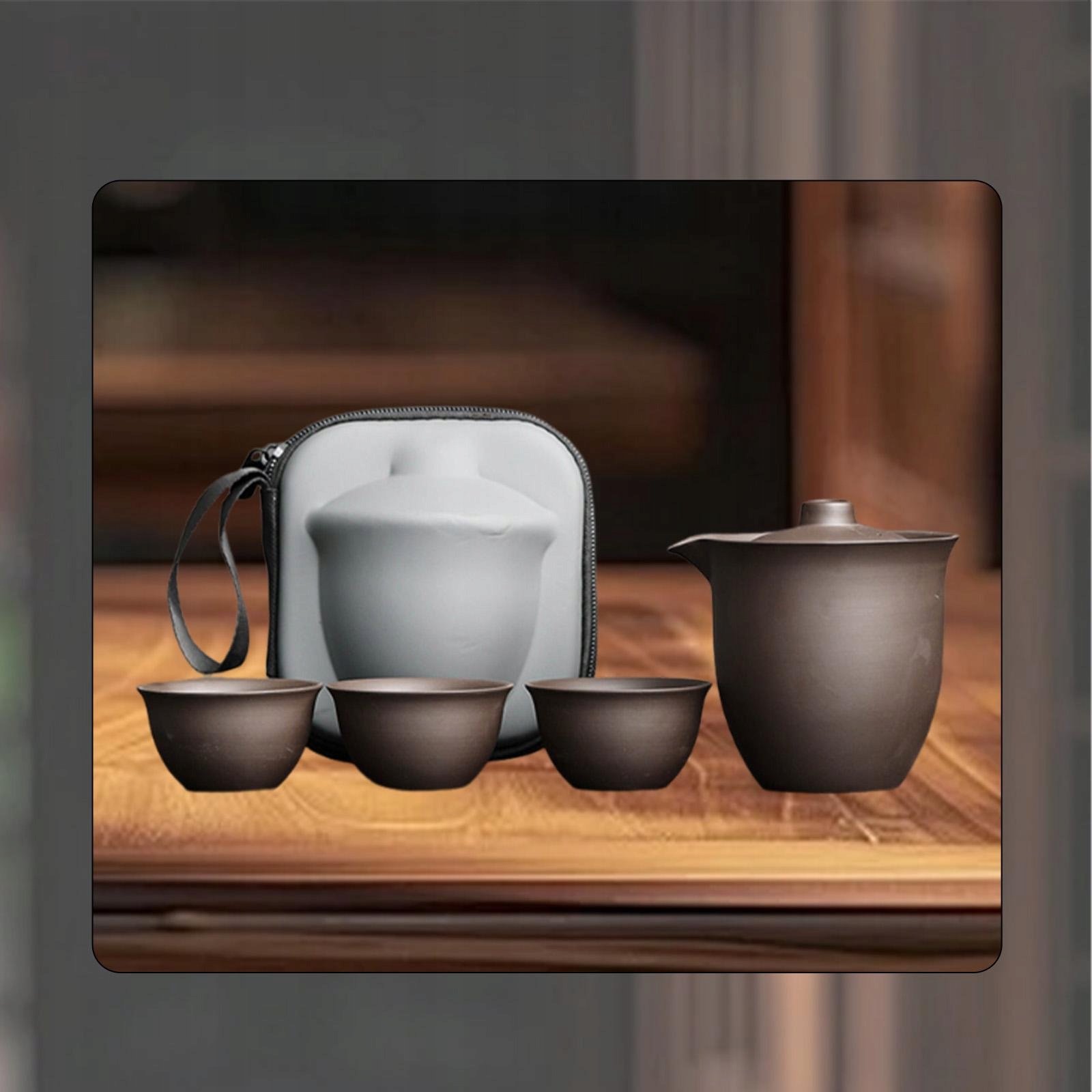 Елегантний дорожній порцеляновий чайник з сумкою-органайзером, однотонний китайський