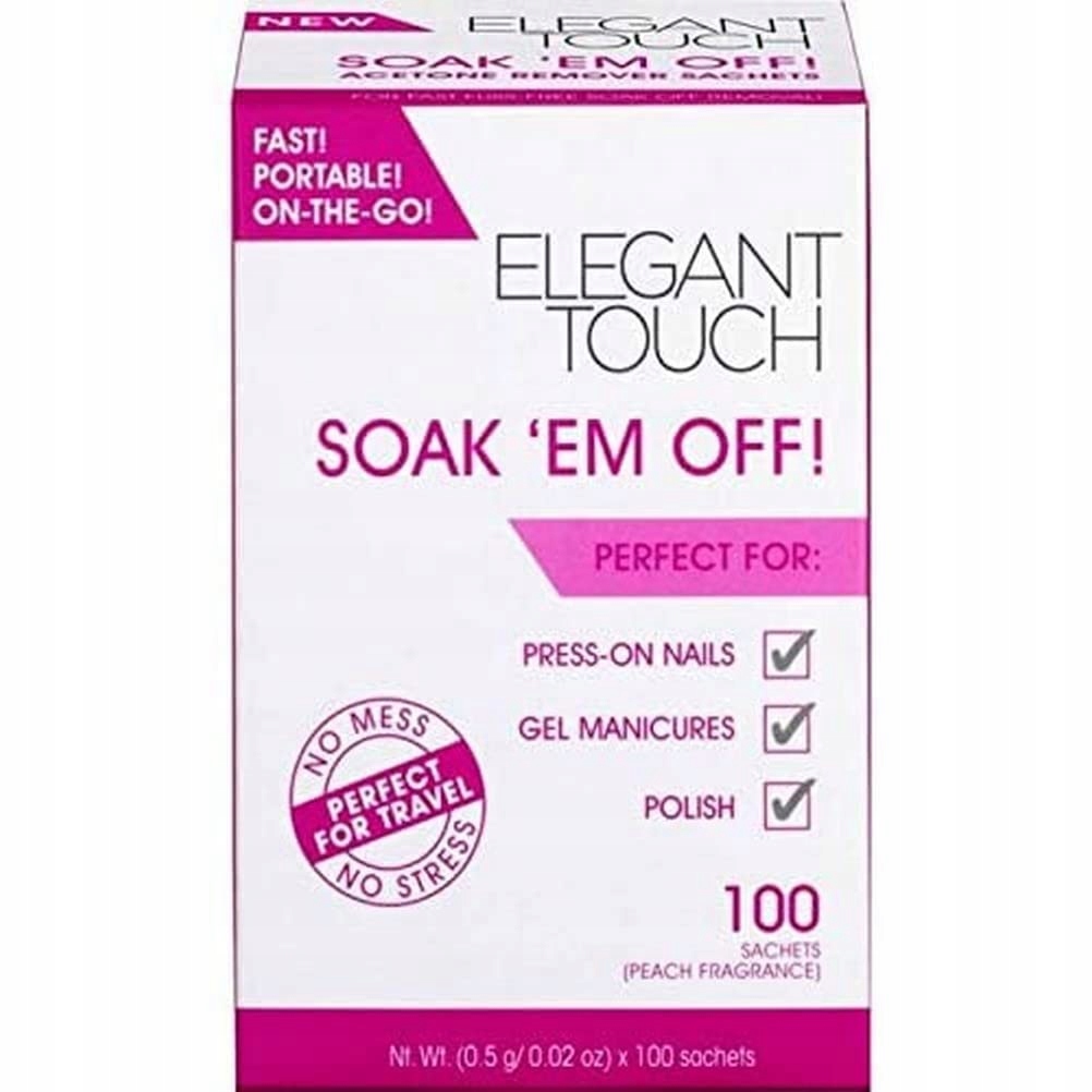 Вступ Зовсім та інноваційна замочка з усуненням лаку для нігтів Suthets від Elegant Touch. Soak 'Em Off Sachests-це новаторський спосіб видалити не тільки ваші прес-нігті, але й вперті темні або блискучі лаки, гель-лак та акрил. Fast & Portable to Use, They Are Perfect for Travel or Even If You'Re Short of Time (or Losing Patience with Traditional Soak-Off Techniques ... We Hear You!) With No-Mess and No-Stress, Simply Peel, WraP Armund the nail and leave on 10 minutes Before Removing To Reveoving To Reveoving To Reveoving To Reveoving To Reveoving To Reveval To Reveval To Reveval To Reveval To Reveval To Ревваль до Реввалу до Реввала до Реввала до Реввалу до Ревва до Реввала до Реввала до Реввалу до Реввалу до Реввалу до Реввалу до ревалу чисті та здорові нігті!