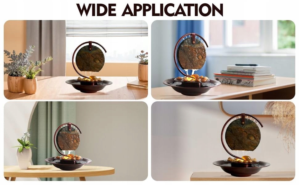 - Елегантний фонтан - ідеальне доповнення до будь-якого інтер'єру, він привносить у ваш інтер'єр нотку фен-шуй. Водяна система видає ніжні звуки природи, імітуючи заспокійливі звуки дощу. Вода, що тече по каменю, переносить ваші думки на лоно природи і знімає напругу після важкого дня. Ідеально підходить для офісу, спальні, вітальні, патіо або балкона.