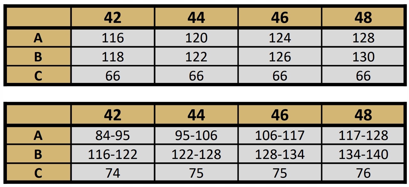 Вироби міряються плазом, назовні, застібаються на гудзики (блискавку). Щоб вибрати найбільш підходящий розмір, виміряйте подібний одяг зі свого гардеробу та порівняйте його розміри з таблицею розмірів даного виробу. Розміри, наведені в таблиці, можуть відрізнятися від фактичних розмірів виробу на +/- 2 см. Модель на фото має зріст 164 см і носить 42 розмір.