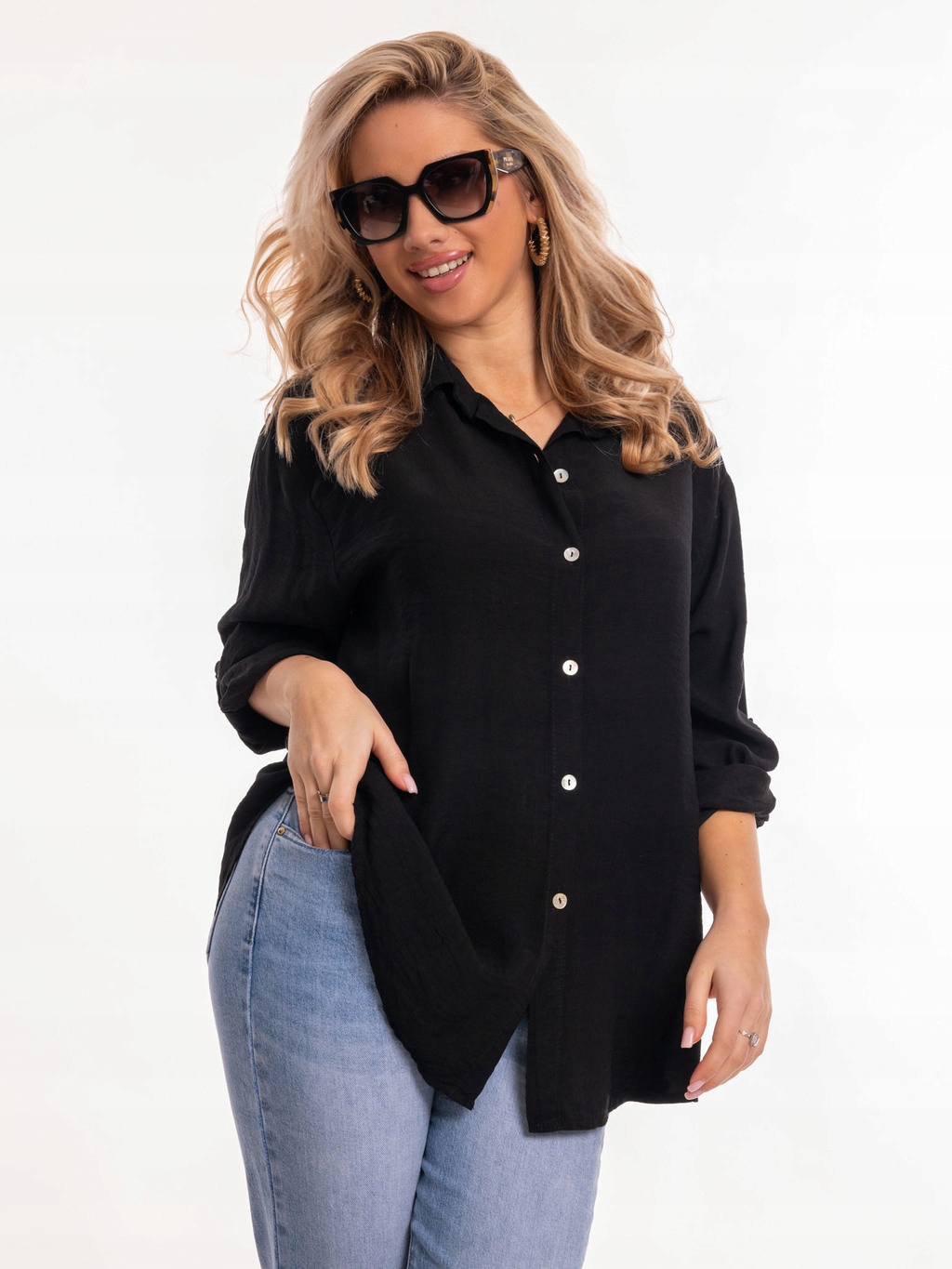 Елегантний комір сорочки гладкі кнопки чорний