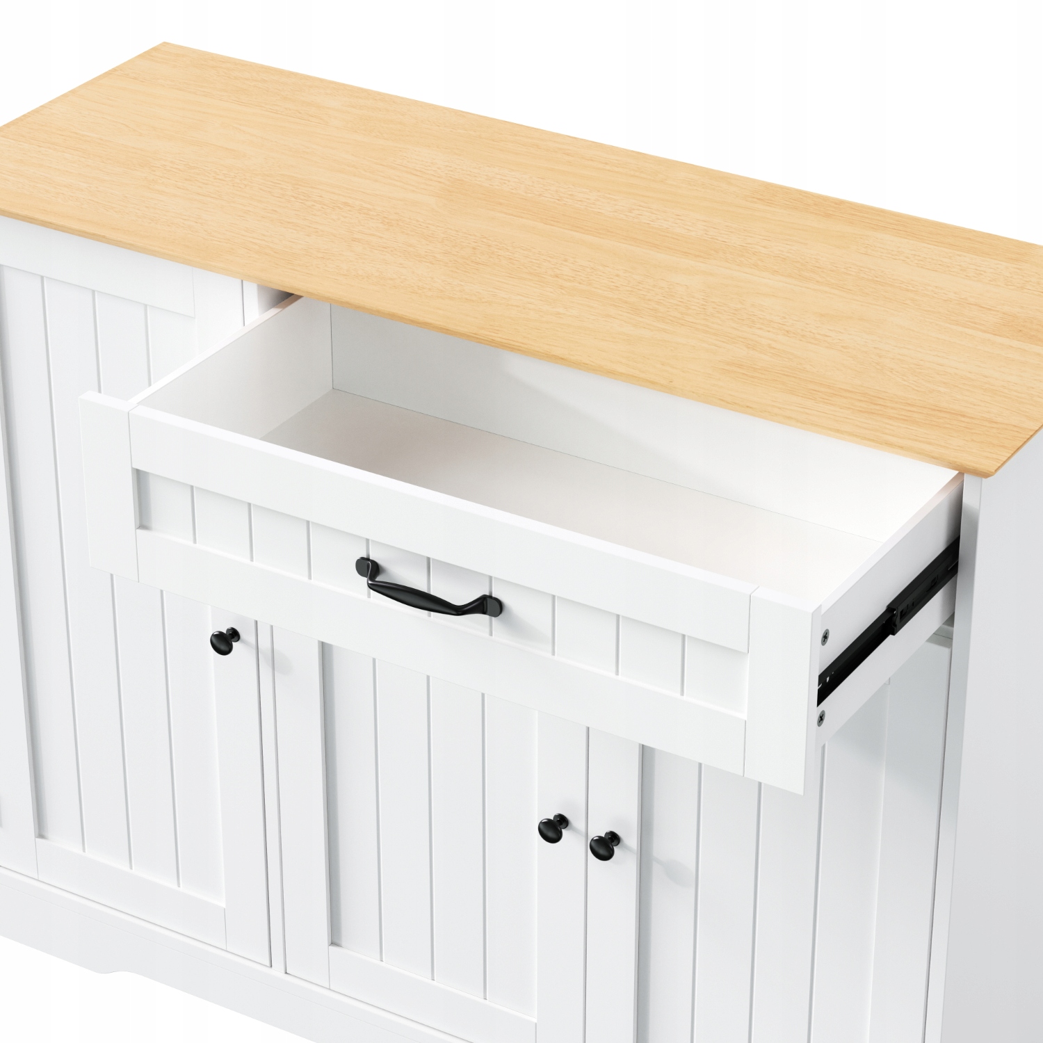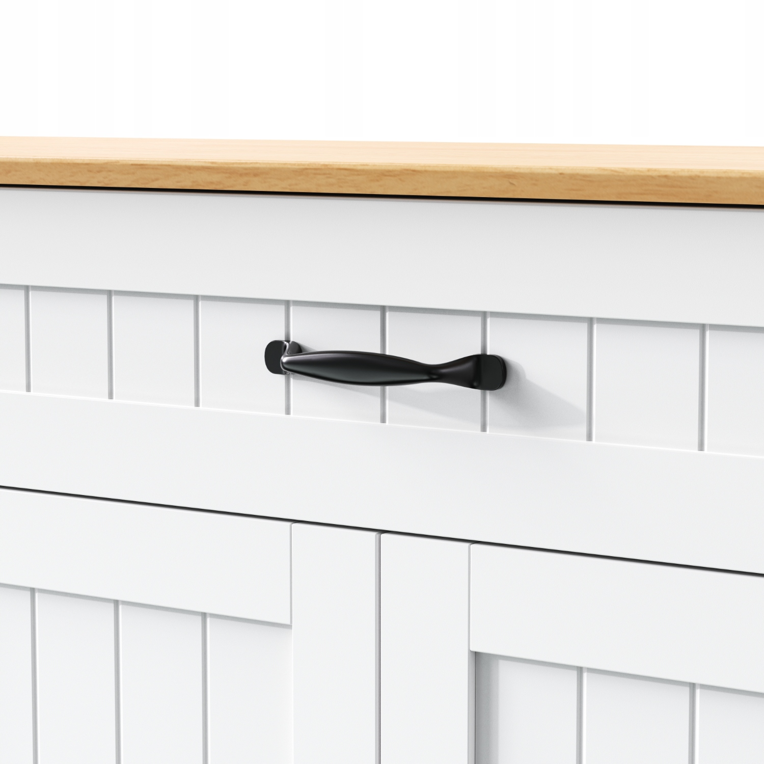 - Сучасний дизайн:Цей приглушений білий комод випромінює елегантність завдяки класичним чорним металевим ручкам і ручкам. Вертикальні передні лінії та заокруглена основа створюють чистий і обтічний візуальний ефект, який ідеально поєднується зі скандинавським або сучасним стилями інтер’єру. Текстурована основа не лише додає елегантності, але й покращує стійкість, роблячи її ідеальною для передпокою, вітальні чи їдальні.