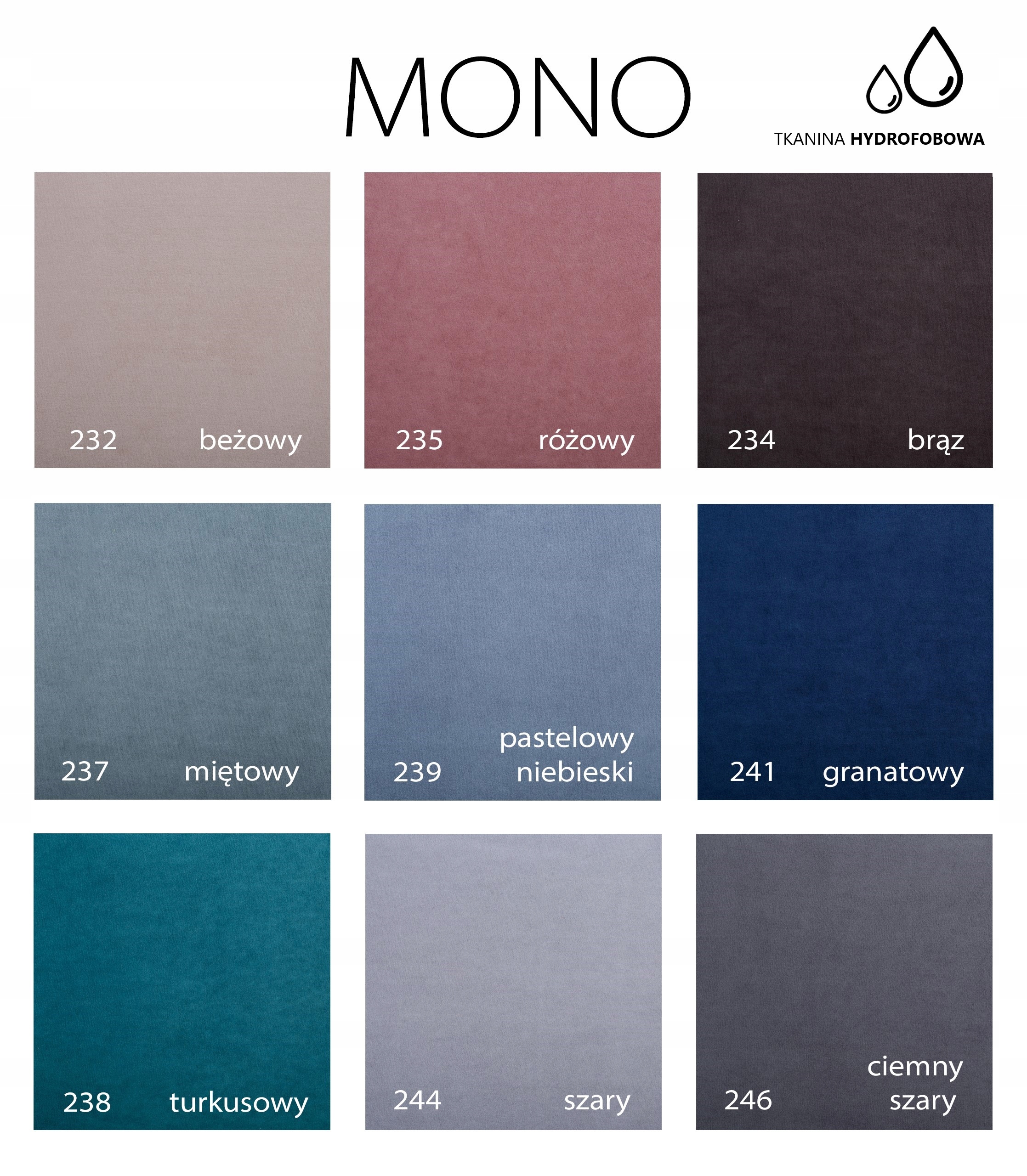 Приємна на дотик м'яка гідрофобна тканина з тактильним ворсом. Кольори, що містять модні пастельні відтінки.