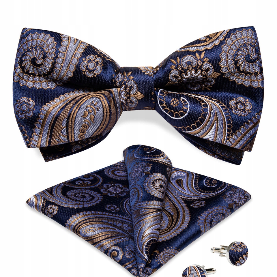 Високоякісний краватка-метелик із жакардової тканини в комплекті з кишеньковим квадратом і запонками