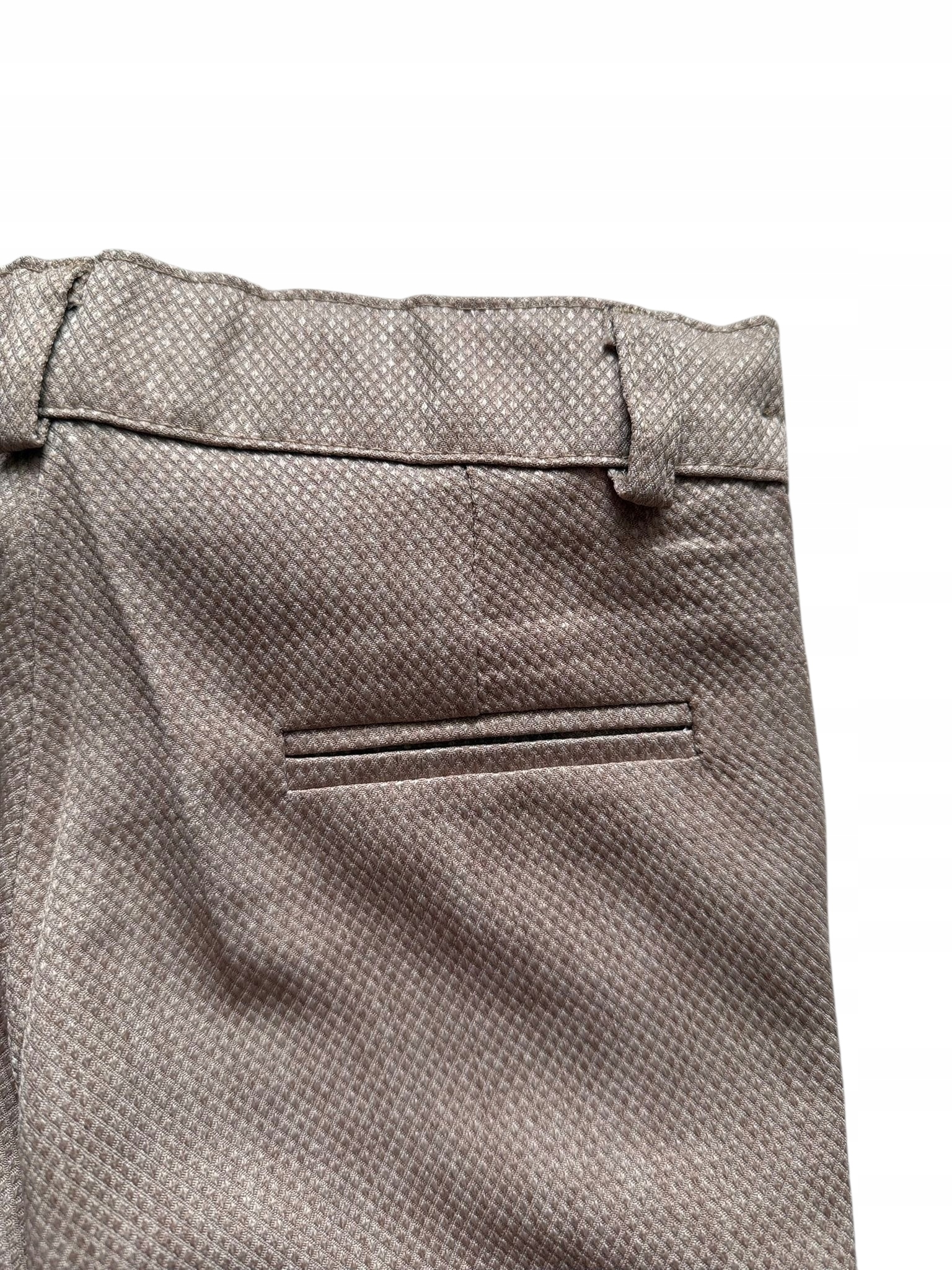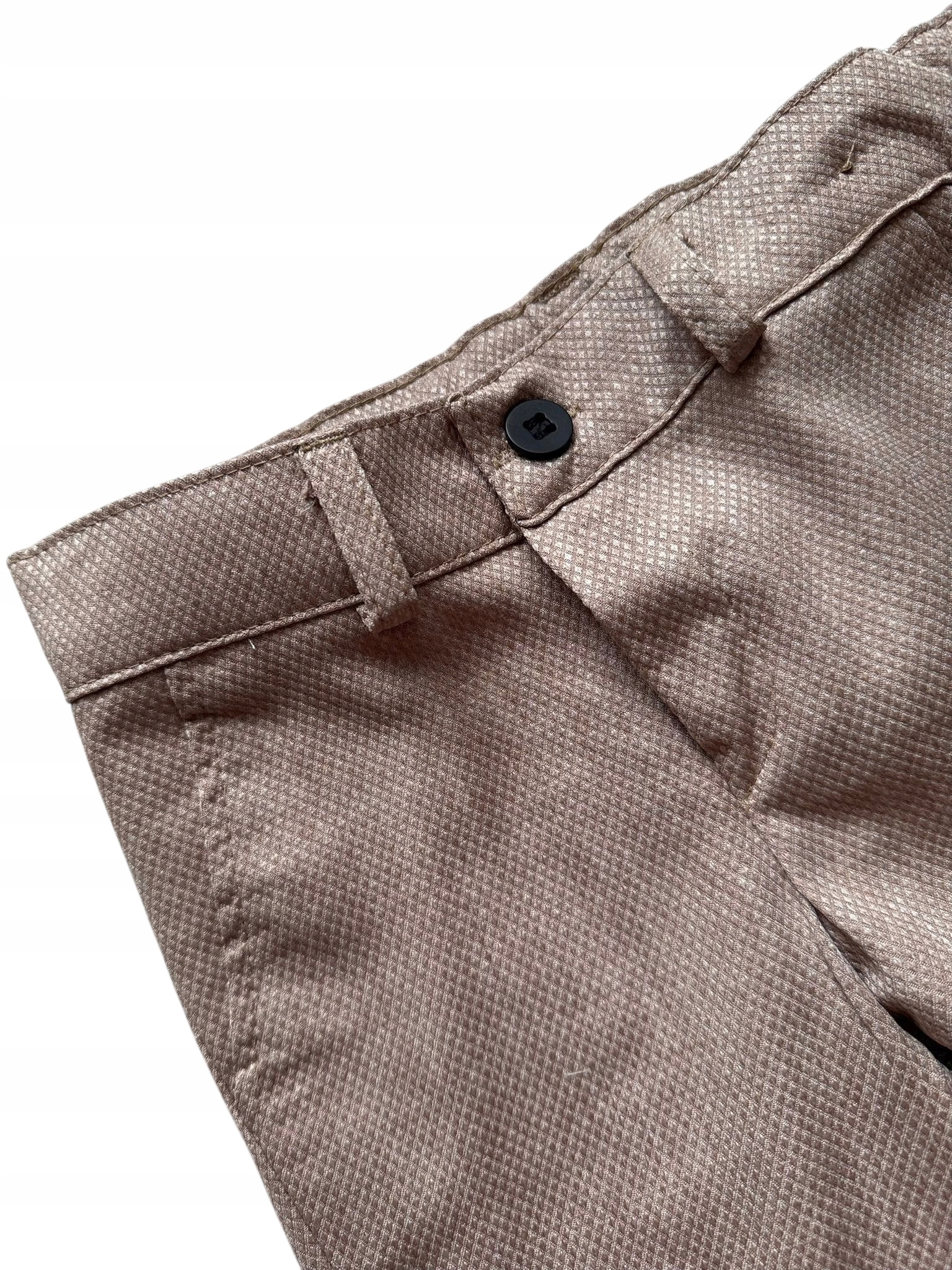Штани бежеві. Шлевки на талії, кишені з боків. Регульований еластичний пояс.