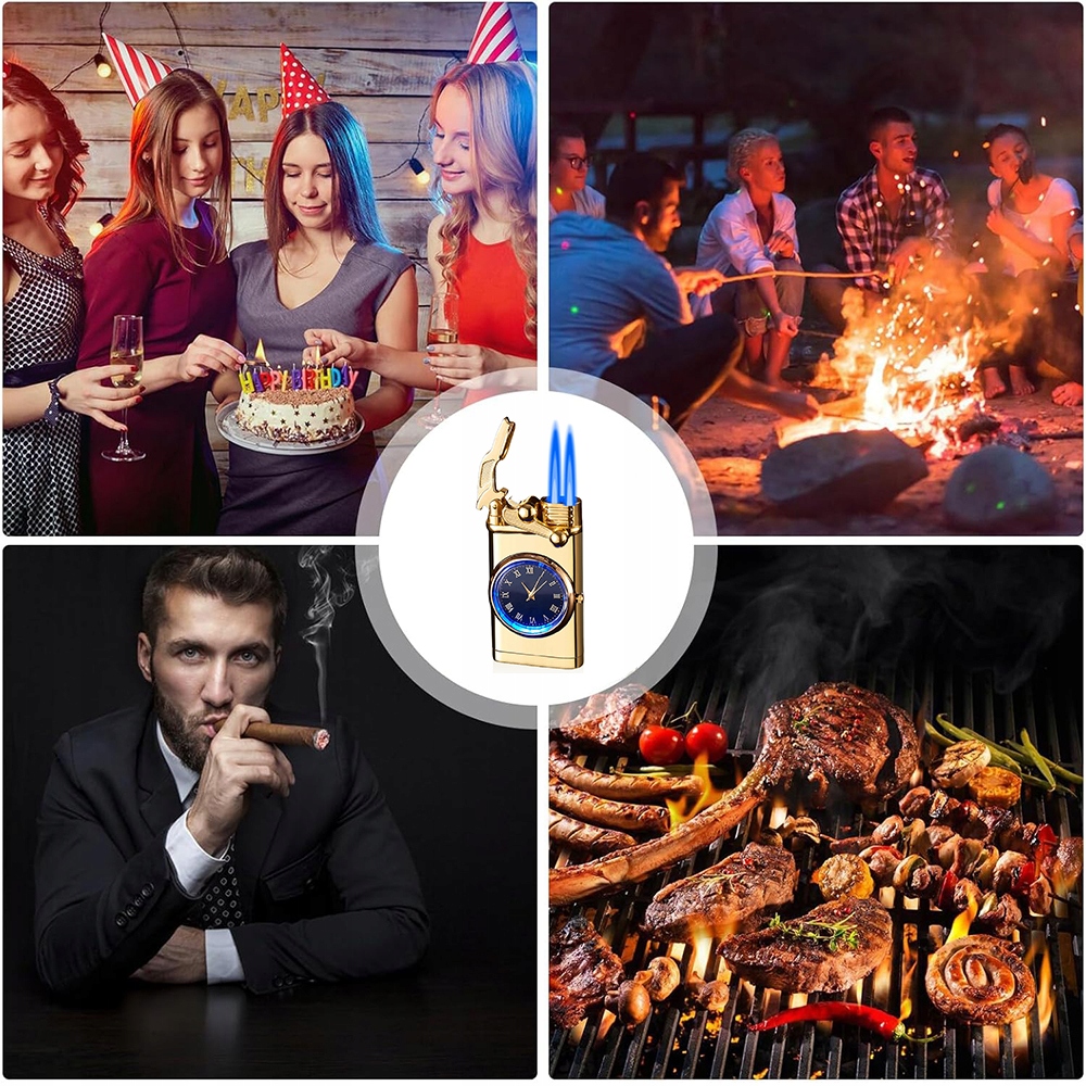 lus, виготовлений з високоякісного сплаву цинку, має елегантний вигляд. Він не тільки запалює вогонь, але й має годинник, що показує годину.