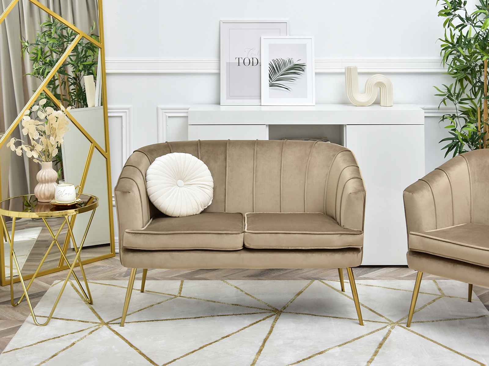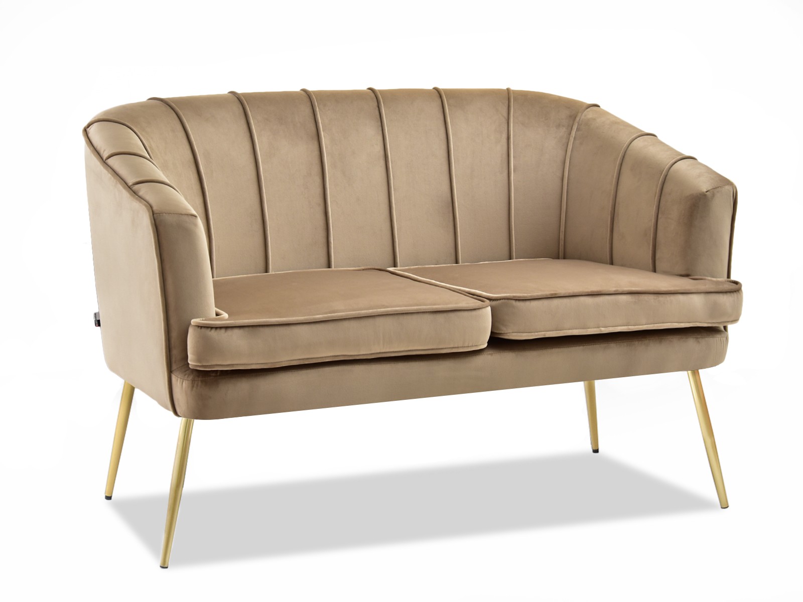 Елегантний маленький диван Естель Велюдж Бежевий на золотих ногах для 2 осіб