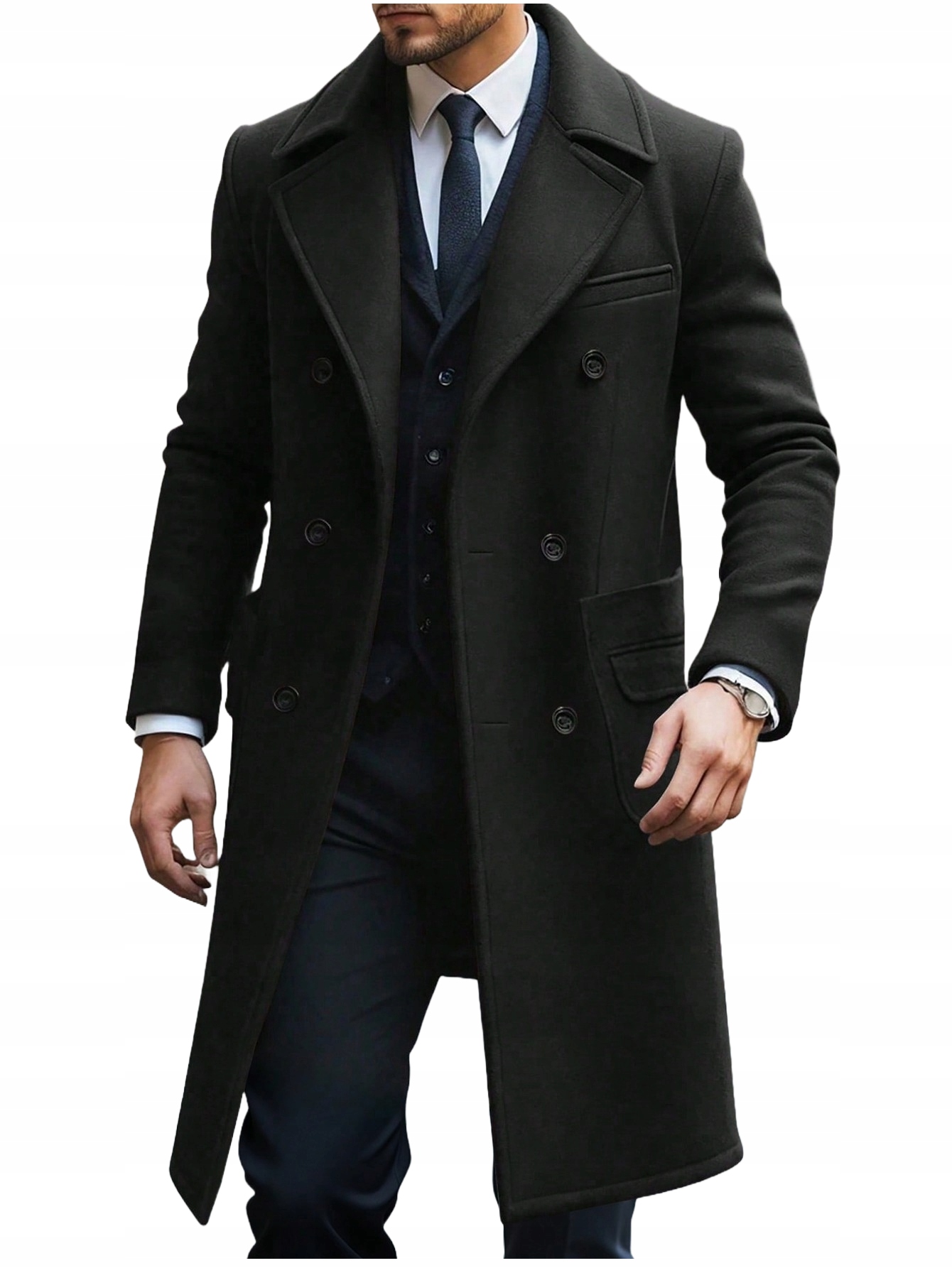 Елегантний модний чоловічий зимовий пальто зимовий довгий подвійний