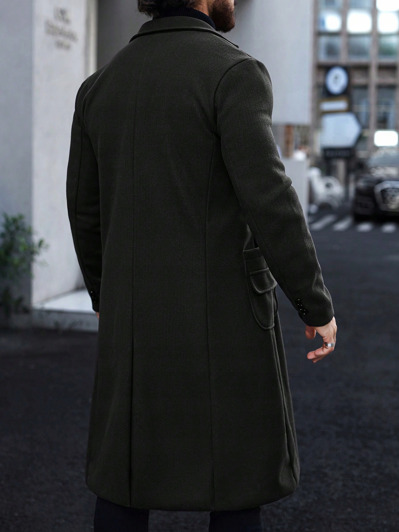 Подвійний поріз додає витонченому стилю пальто, підкреслюючи його класичний та позачасовий характер.