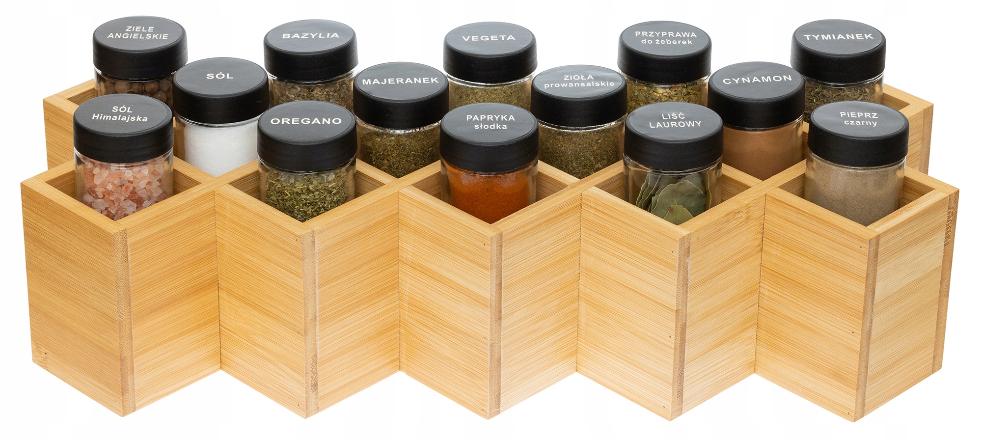 Дерев'яна бамбукова підставка для спецій на 14 банок і 48 етикеток - це елегантний органайзер, який принесе порядок, комфорт і естетику на вашу кухню. Якщо вам набридли розсипані спеції та нерозбірлива упаковка - час для порядку та стилю в натуральному варіанті!