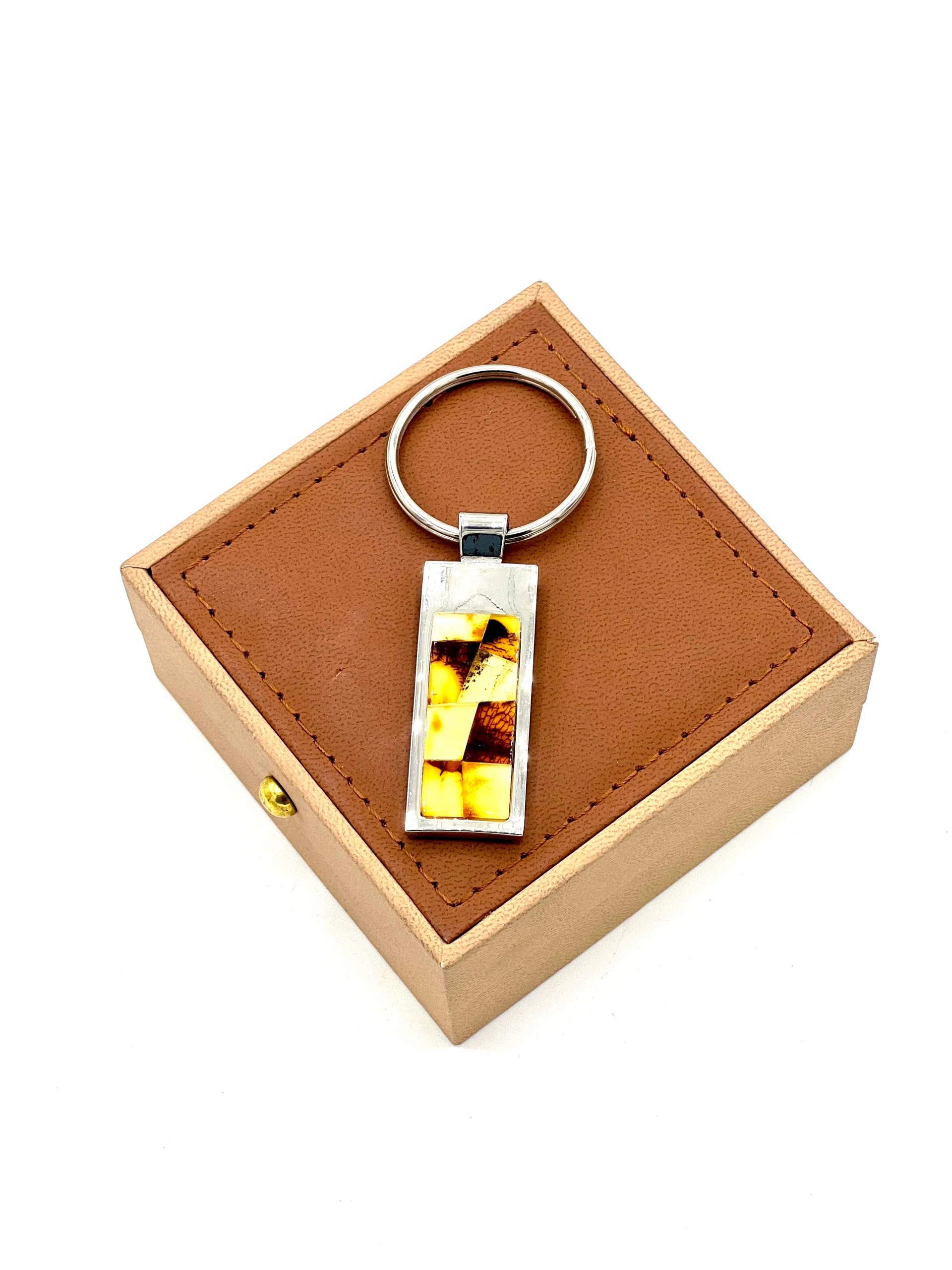 Брелок з бурштиновою мозаїкою з маленьких шматочків балтійського бурштину різних кольорів.