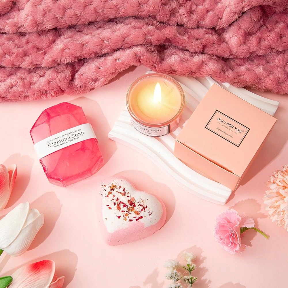 Цей красивий рожевий подарунковий набір «Затишок і догляд за собою» — ідеальна ідея подарунка для коханої людини.
