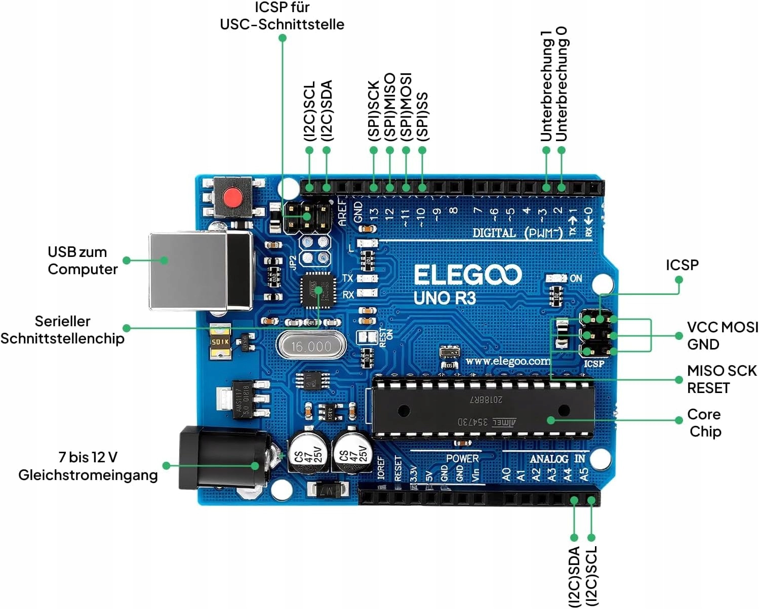 Цей універсальний стартовий набір ELEGOO UNO R3 містить аж 63 різні компоненти, які є чудовою відправною точкою для вивчення програмування та електроніки. Набір включає, зокрема:
