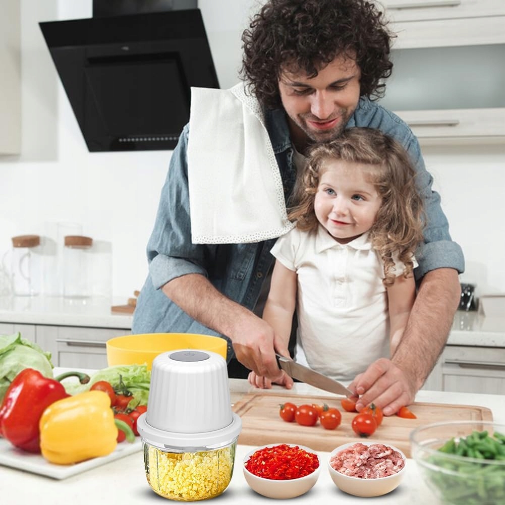 Електричний подрібнювач цибулі має місткість 400 мл, що дозволяє подрібнювати велику кількість їжі. Він компактний і портативний, легко поміщається в будь-яку шафу, що робить його ідеальним для невеликих кухонь, пікніків, кемпінгу, походів тощо.