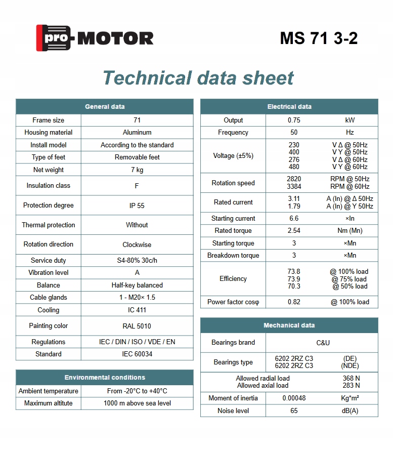 Електрична англійська MS 0,75 кВт 2800 об / хв. 71 B5