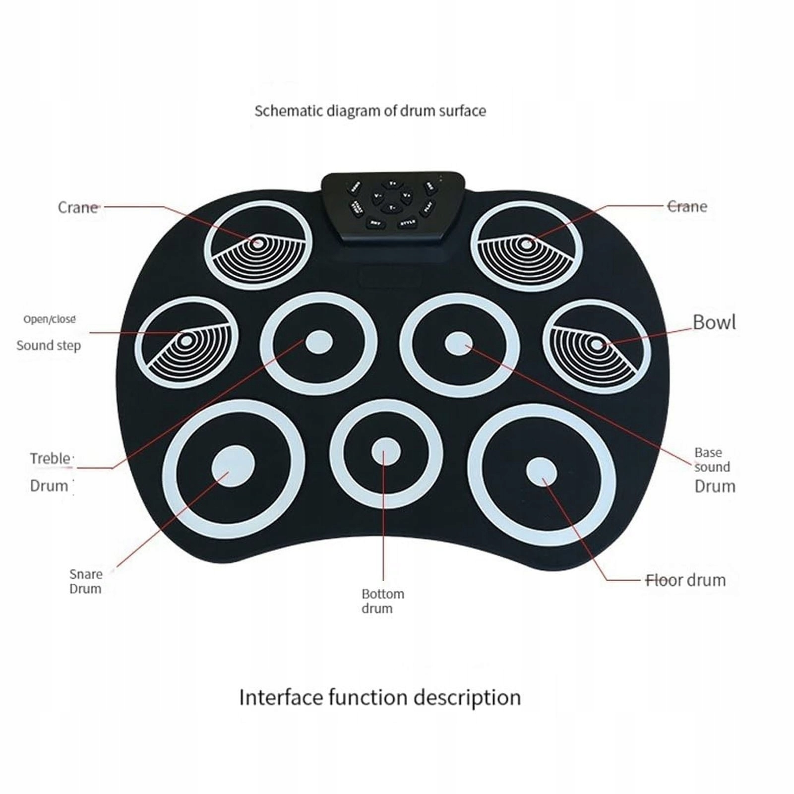 2. Кілька барабанних педів: цей портативний електронний барабанний набір містить до 9 педів, включаючи бас-барабан, фоновий том, малий барабан, хай-хет і тарілки, що пропонує широкий діапазон звуків для різноманітної гри та навчання.