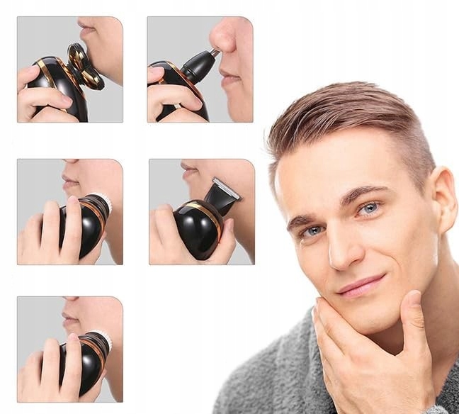 Functions and features of the device: h2> - 5 in 1 : rotary shaver, beard trimmer, nasal and ear trimmer, cleansing brush, face massage head