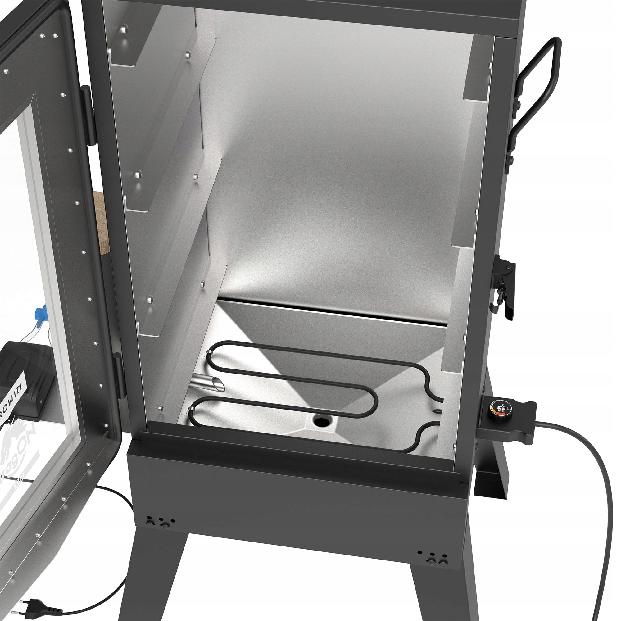 - Потужність і функціональність – 70-літрова коптильня достатньо для копчення великих кількостей, але водночас компактна, щоб розміститися в більшості приміщень. Багато конкуруючих моделей пропонують меншу місткість або не адаптуються до різних видів їжі.