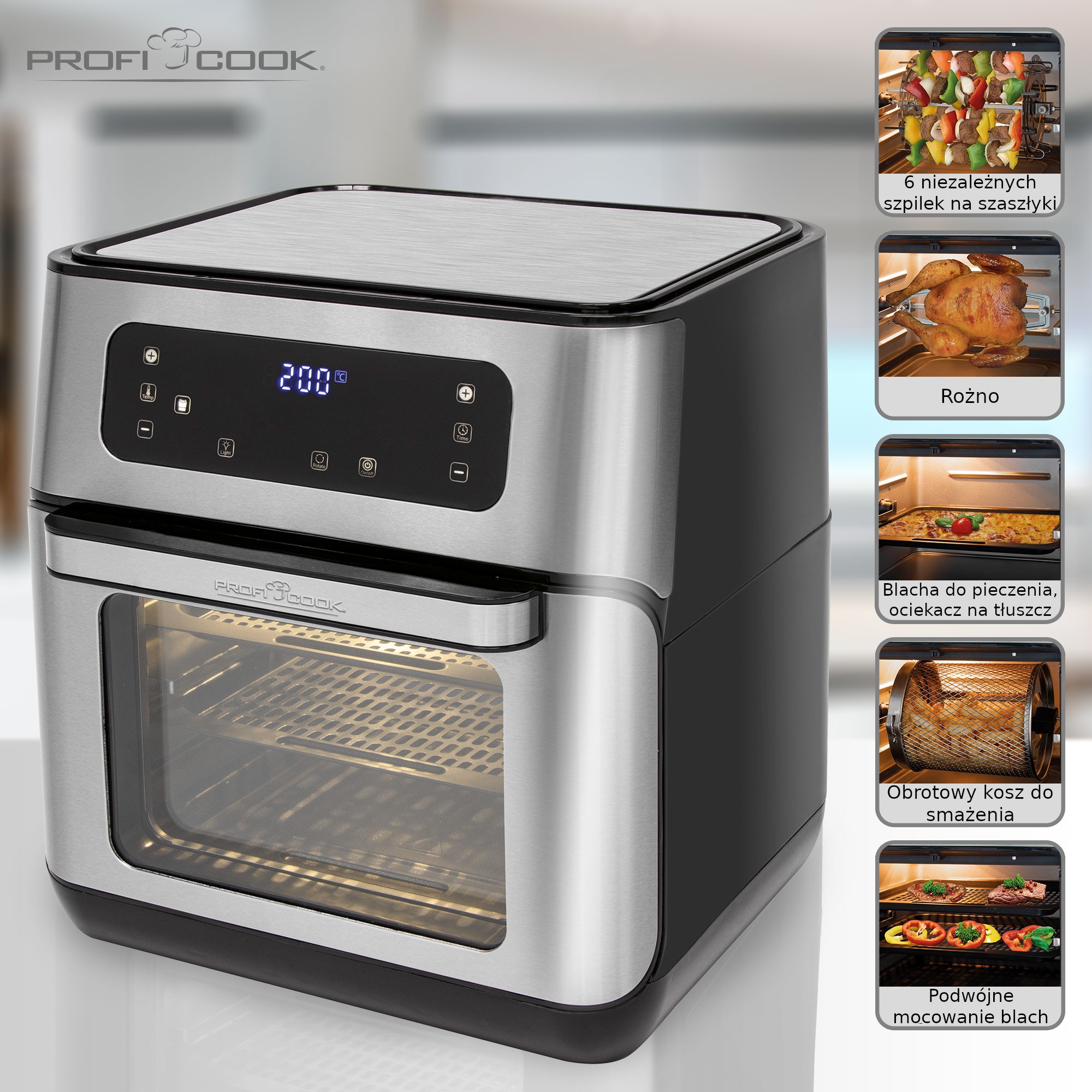 Фритюрниця ProfiCook використовує гаряче повітря, яке досягає температури до 200°C, щоб готувати страви здоровими та смачними. Завдяки цьому вам не потрібен додатковий жир, що дозволяє підтримувати ваш раціон і здоров'я в найкращій формі.