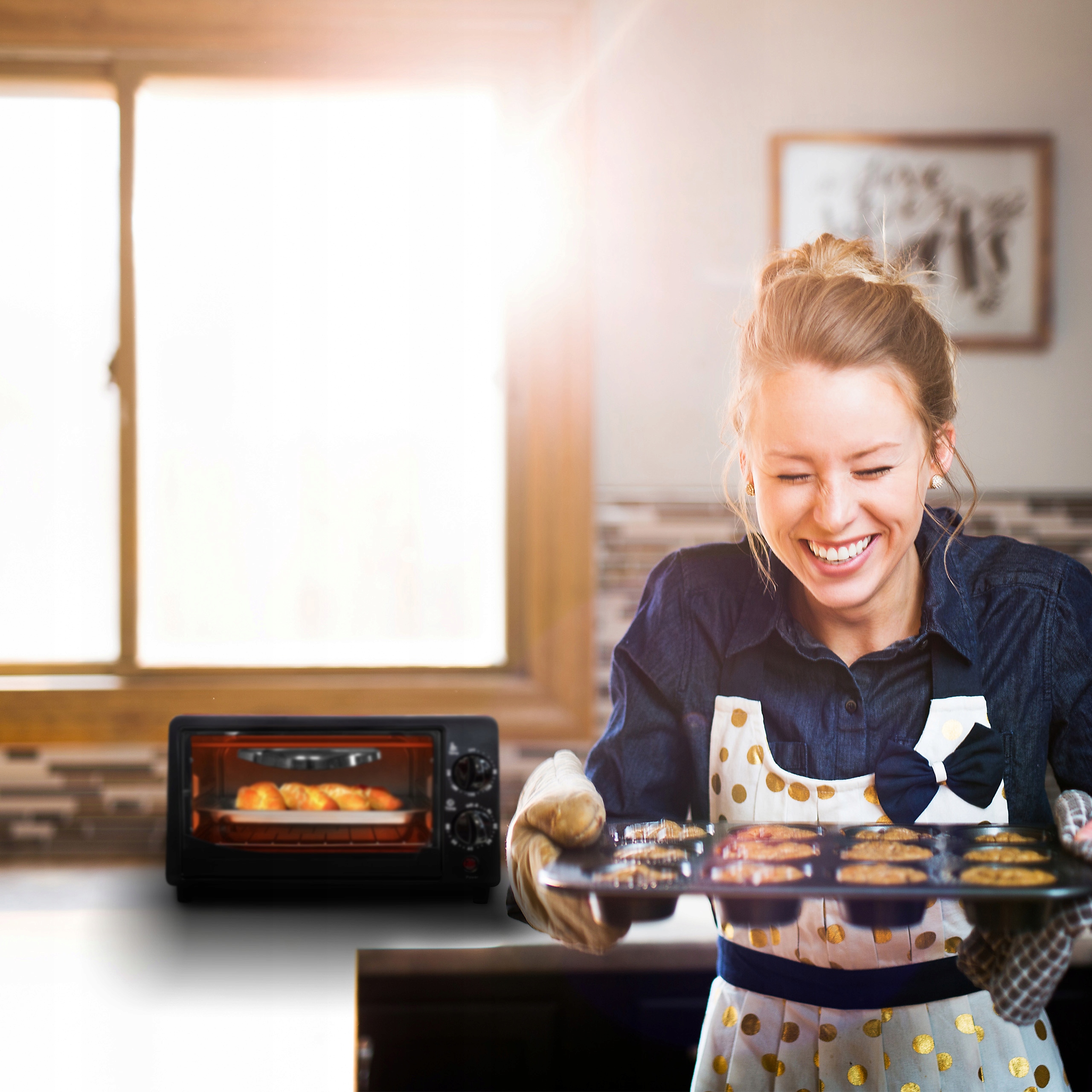 У випадку нашої духовки розмір не має значення, вона може зробити те саме й навіть більше, ніж її старші брати. Ви можете взяти його куди завгодно і в будь-якому місці з доступом до електрики, приготувати улюблену страву, а завдяки стінці із загартованого скла ви зможете перевірити, як воно готується, і не спалити.