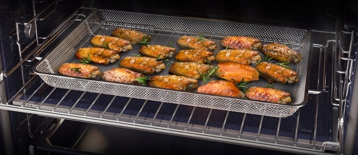 Здоровіша смажена їжа без фритюрниці або фритюрниці. Рішення Air Fry забезпечує циркуляцію гарячого повітря навколо їжі, яка випікається на спеціальному підносі. Це ідеальний спосіб приготування картоплі фрі, хрустких картопляних крокетів та овочів. Він усуває непотрібний жир, гарантуючи, що їжа буде хрусткою та підрум’яненою зовні та соковитою всередині. Купівля та зберігання додаткового обладнання на кухні стає непотрібним!