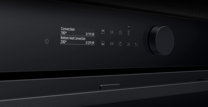 Комфортне керування духовкою завдяки інтуїтивно зрозумілому персоналізованому управлінню. Мінімалістичний дизайн пропонує стильну панель керування з РК-дисплеєм 2,25 дюйма, сенсорним управлінням і однією ручкою. На основі шаблонів використання пристрій представляє режими, які найчастіше використовуються, і дозволяє швидко їх вибирати.