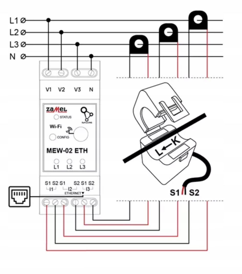 вдосконалений, двосторонній монітор електричних виборів. Монітор оснащений модулем Wi-Fi та розеткою RJ-45, завдяки якому ми маємо можливість бездротового та дротового з'єднання. Налаштування в режимі конфігурації можна здійснити за допомогою обох з'єднань, тобто Wi-Fi або Ethernet. Завдяки програмі SUPLA, доступної для пристроїв iOS та Android, ви можете контролювати параметри встановлення в режимі реального часу, аналізувати дані, пов'язані з споживанням та виробництвом енергії, та отримувати сповіщення про аномалії. MEW-02 ETH особливо корисний для підприємств, пропонуючи широкий спектр інтеграції через API, підтримку протоколу MQTT та можливість експорту вимірювань у файл. Дані вимірювання, зібрані пристроєм, також можуть бути проаналізовані на обширній панелі історії вимірювання хмари SUPLA, що пропонують різні дані та діаграми.