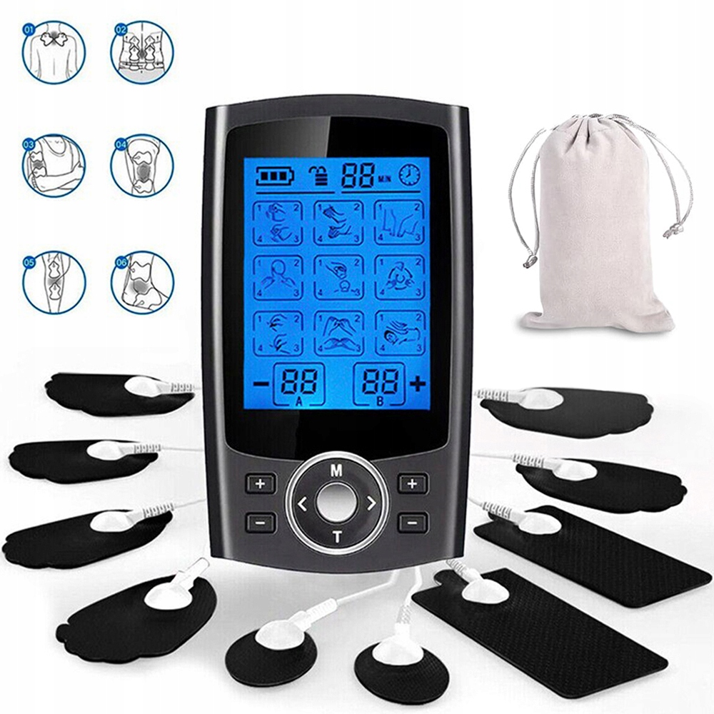 - - Терапія TENS використовується для імітації ручного масажу, допомагаючи поліпшити кровообіг, полегшити біль у всьому тілі та розслабити м’язи. (Натисніть кнопку "M", щоб змінити режим). який можна легко регулювати, натиснувши кнопку "+/-", щоб збільшити або зменшити інтенсивність. І рівень акумулятора спалахує, коли вам потрібно зарядити його.