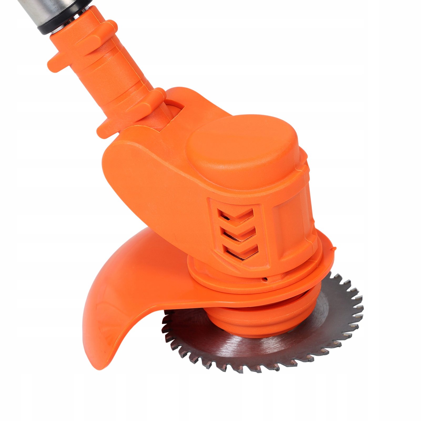 порівняно цей бездротовий тример відноситься до аналогічних моделей, доступних на ринку міцніший і міцніший. Перегородка для трави може запобігти розбризкуванню трави під час роботи косарки. Одна кнопка для регулювання робочого кута, що зручно під час косіння під деревами, в кутах стін, на краях клумб тощо
