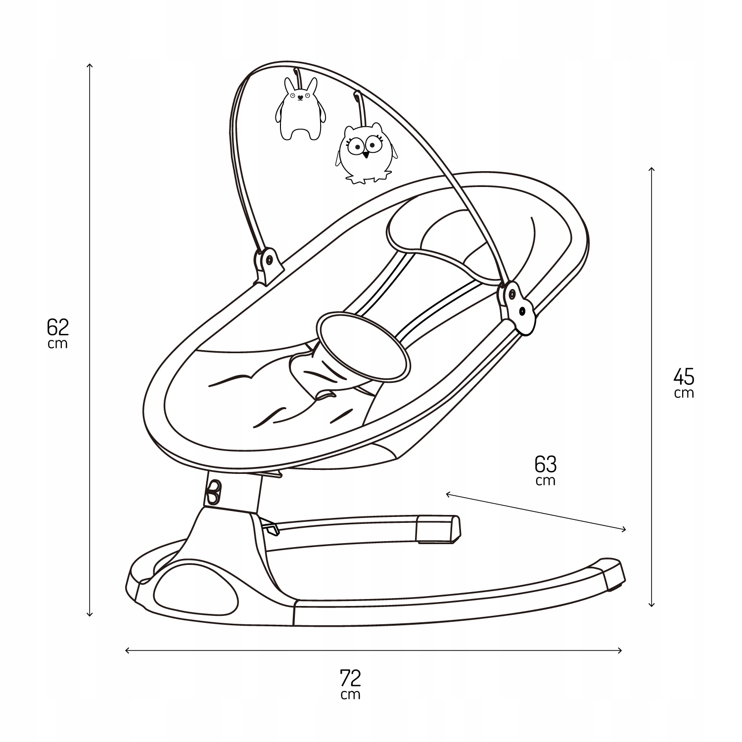 Гойдалка має 10 вбудованих мелодій з регулюванням гучності, а також сучасний модуль Bluetooth, який дозволяє відтворювати улюблену музику прямо з телефону.