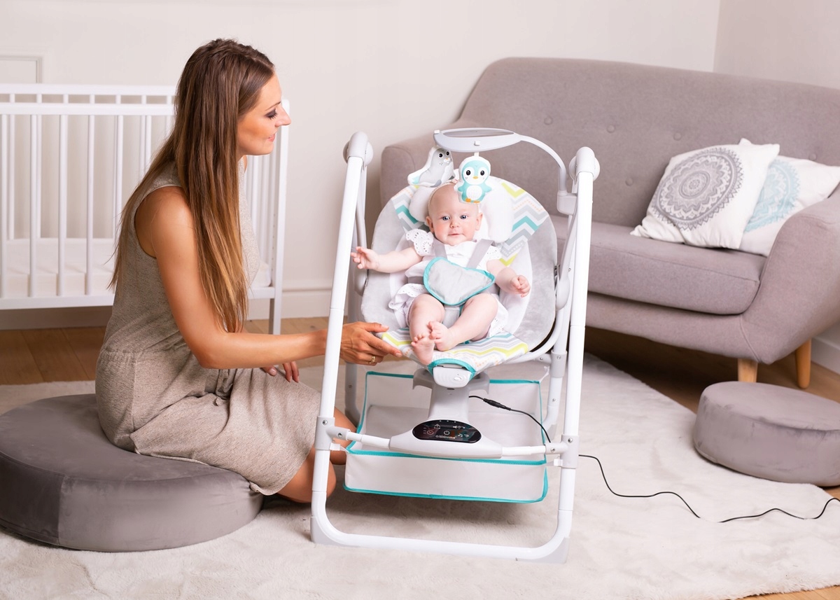зручний гойдалки, який приховує багато корисних функцій. Тут ви знайдете знімну діапазон іграшок , контейнер для найбільш необхідних дрібничок, знімний підголівник, вібраційна функція та сенсорна панель , яка відповідає за запуск мелодії, контролюючи швидкість гойдання та програмування таймера. Дитина. Блокування гойдалки дозволить використовувати гойдалки в статичному режимі, а несучі ноги та 5-бальні ремені подбають про безпеку дитини. Набір включає адаптер, який дозволяє підключити розкішну розкішну розкішну живлення до джерела живлення. Функція живлення акумулятора дозволяє використовувати гойдалку, де б ми не мали доступу до мережевої потужності качок
