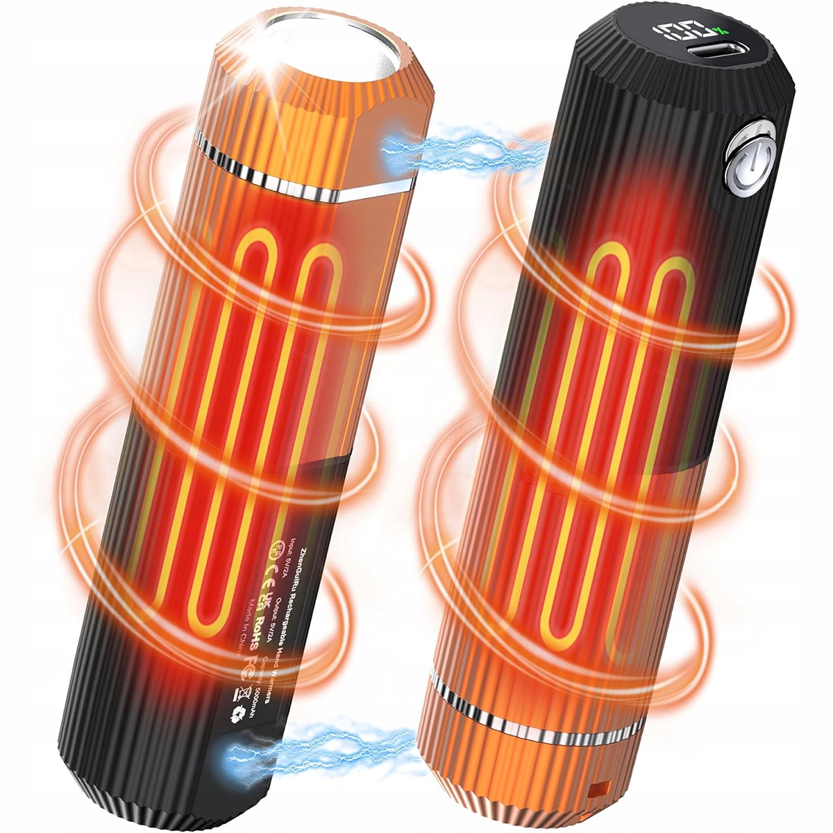 ✨✨Магнітні грілки для рук 3-в-1, акумуляторні, 10000 мАг (5000 мАг*2), 2 шт. електричні грілки для рук із ліхтариком, портативні кишенькові грілки для рук, 5 рівнів нагріву, теплий подарунок для катання на лижах на відкритому повітрі для жінок і чоловіків (чорний і помаранчевий)