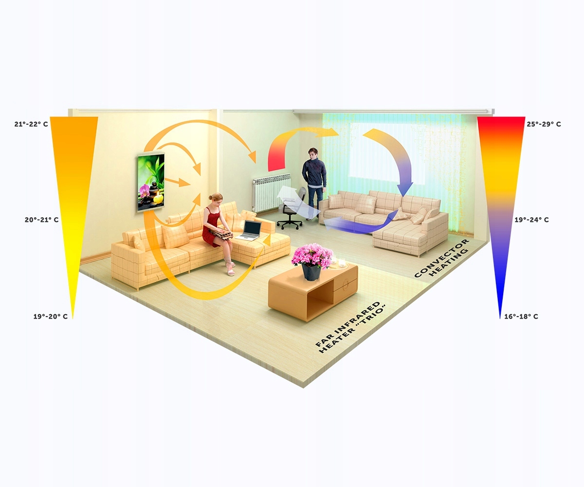 Багато 98% спожитої енергії перетворюється на тепло. Завдяки цьому він споживає в 3-4 рази менше енергії ніж звичайні радіатори, а економія витрат на опалення в опалювальний сезон становить близько 60%, а в перехідні сезони близько 80%! Це не тільки реальна економія на рахунках, але й екологічний підхід до опалення.