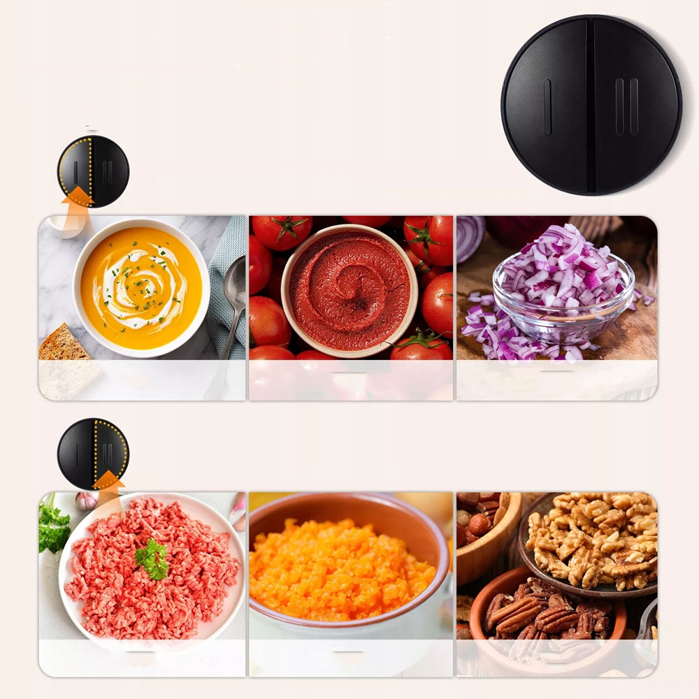 🥦1,6-літровий міні-підшкірний-паддлер оснащений високоякісним 4D-лезом з нержавіючої сталі. Ці міцні леза призначені для різних завдань, від рубання овочів і фруктів до горіхів, трав та багатьох інших. Ідеально підходить для м'яса, фруктів, овочів, горіхів, насіння та інших.