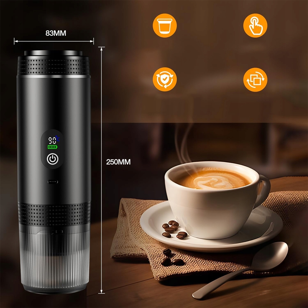 Мрієте про смачну, ароматну каву завжди і будь-де? Ця компактна портативна кавова машина змінить ваш день! Завдяки вбудованій батареї та професійному тиску 20 бар ви зможете приготувати еспресо, гідний бариста - в машині, в офісі, на природі або на маленькій кухні. Забудьте про компроміси! 💪
