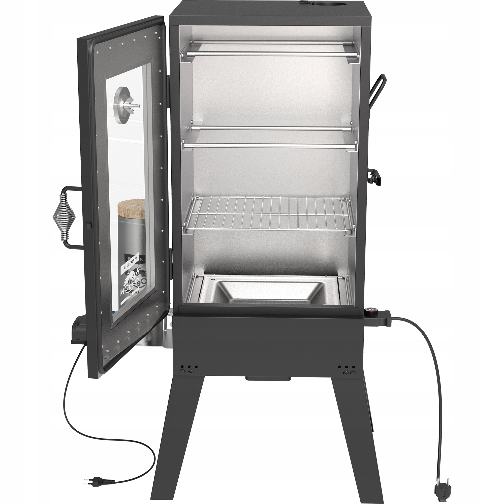 - Чудовий контроль процесу копчення і зручне, просте управління температурою - скляні двері коптильні забезпечують зручний огляд її внутрішньої частини, а термостат і аналоговий термометр дозволяють легко регулювати і контролювати температуру. .