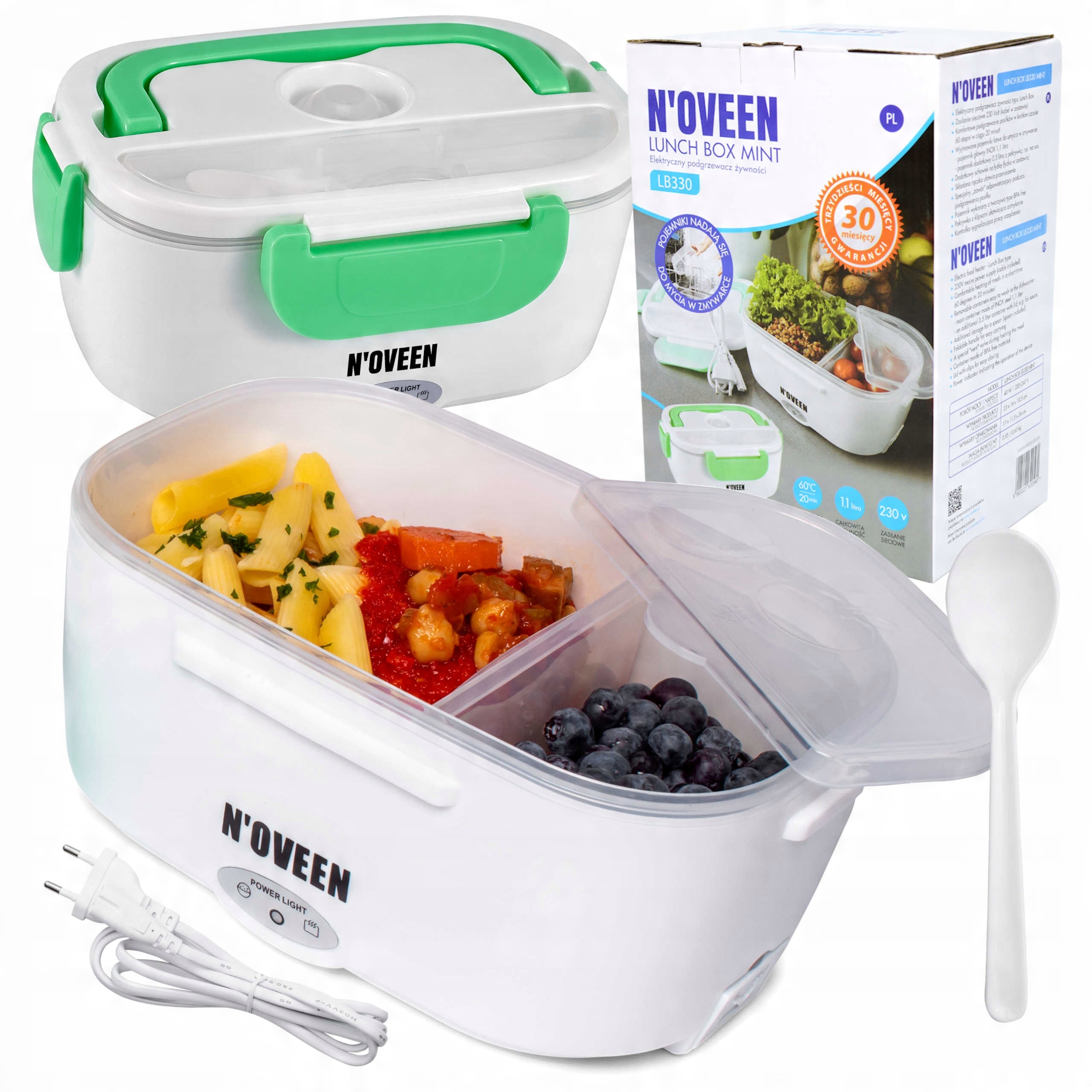 Електричний обігрівач їжі обідній коробка LB330 - це поєднання функціональності та рухливості. Твердий та естетично виготовлений пристрій оснащений нагрівальним елементом PTC, який дозволяє нагрівати їжу до 60 ° C за 20 хвилин. Нагрівач щільно закривається з знімками, які блокують доступ до повітря. Завдяки цьому їжа залишається свіжою довше. Обідня коробка LB330 - це рішення для людей, які цінують активність та здорову дієту. В ідеалі підходить для роботи, коледжу, подорожей та на сюжеті. Підтримувати свою температуру. Операція пристрою сигналізується контрольним діодом.