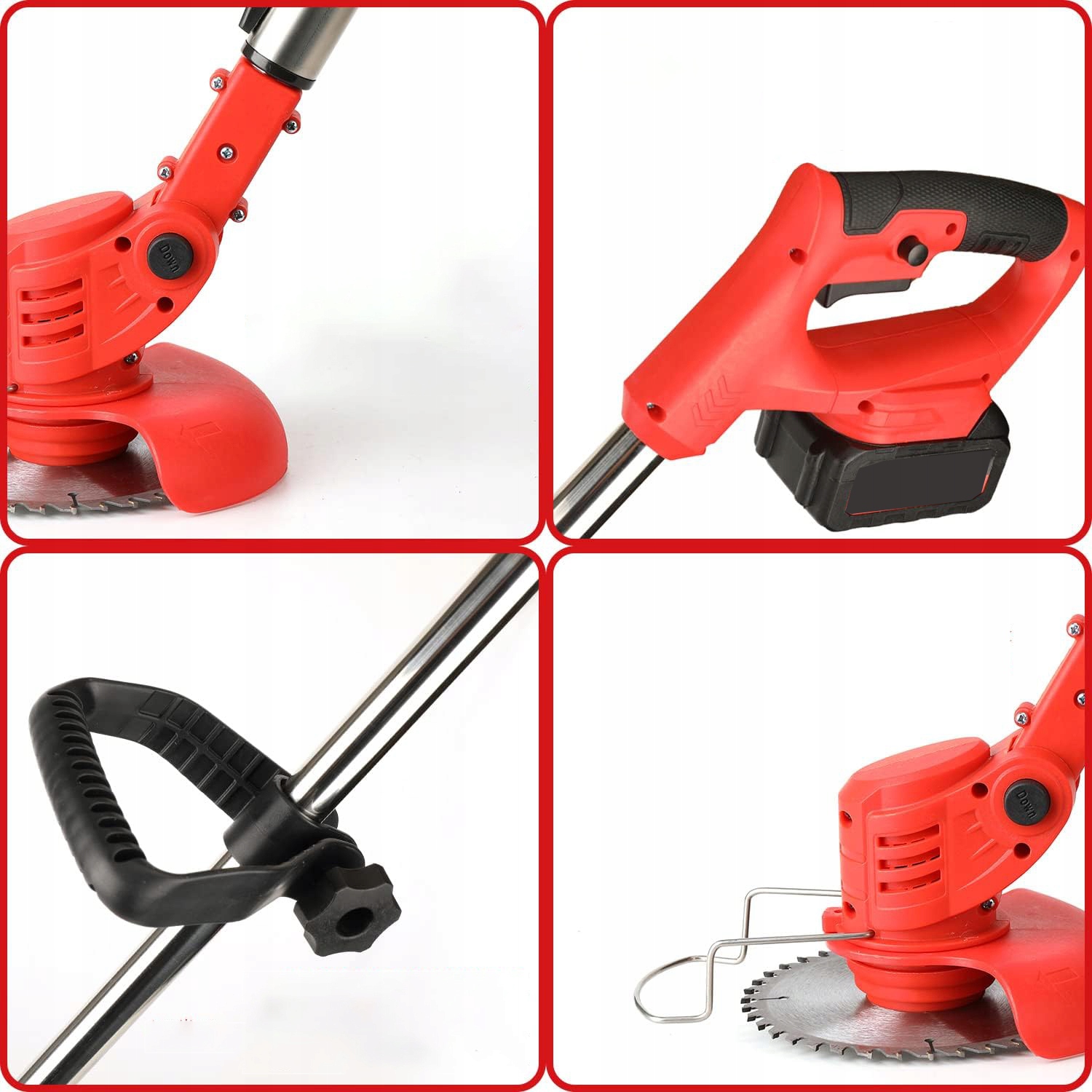 - Машина оснащена 4 з 1 різних типів лопатей для використання у багатьох сценаріях. Виріжте густі гілки чагарників і лоз, стеблові бур’яни, ідеально копіюються з зарослими травою, бур’янами, ожиною, важкими кущами і навіть маленькими деревами (товщина близько 2-5 см).